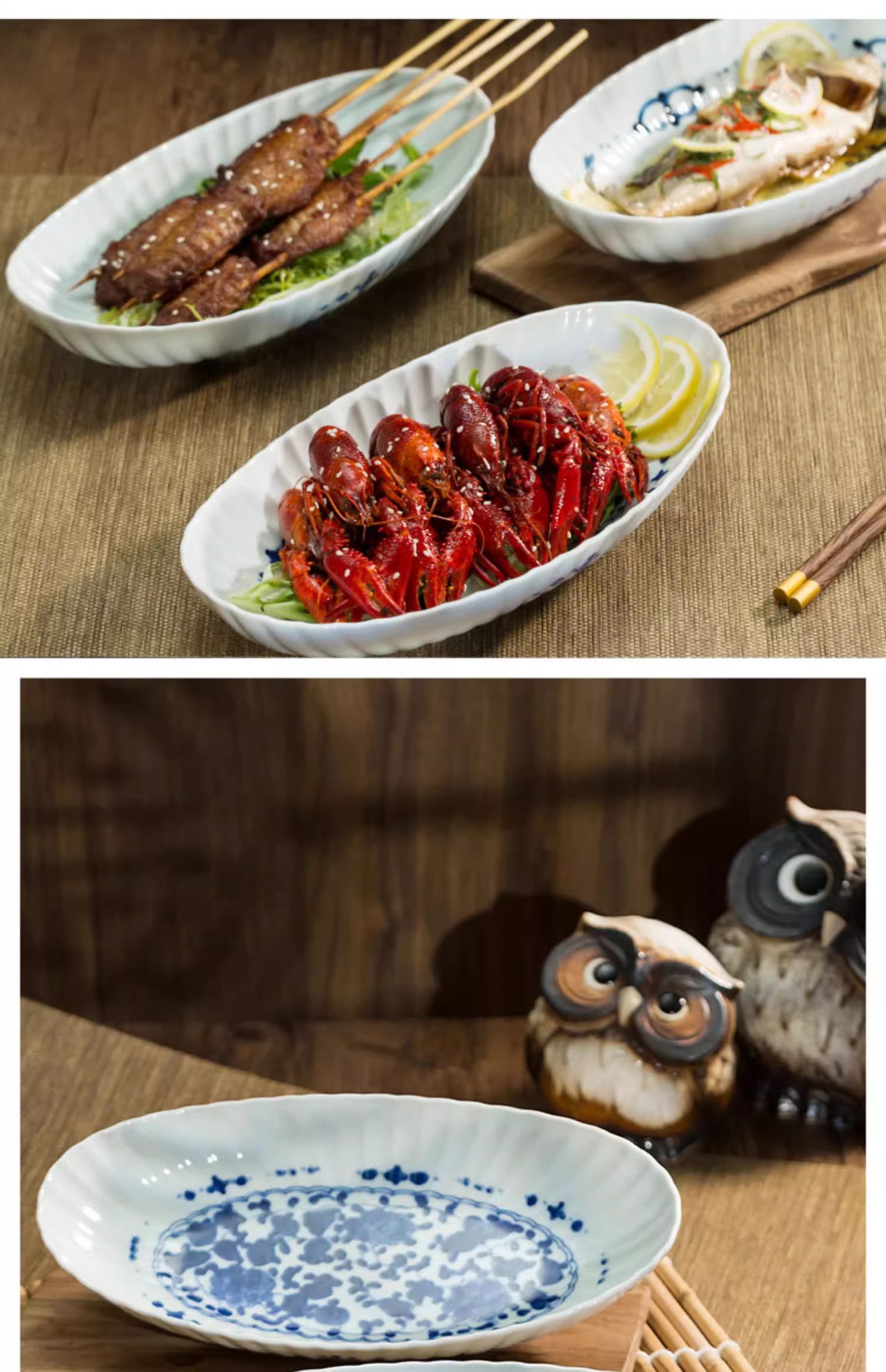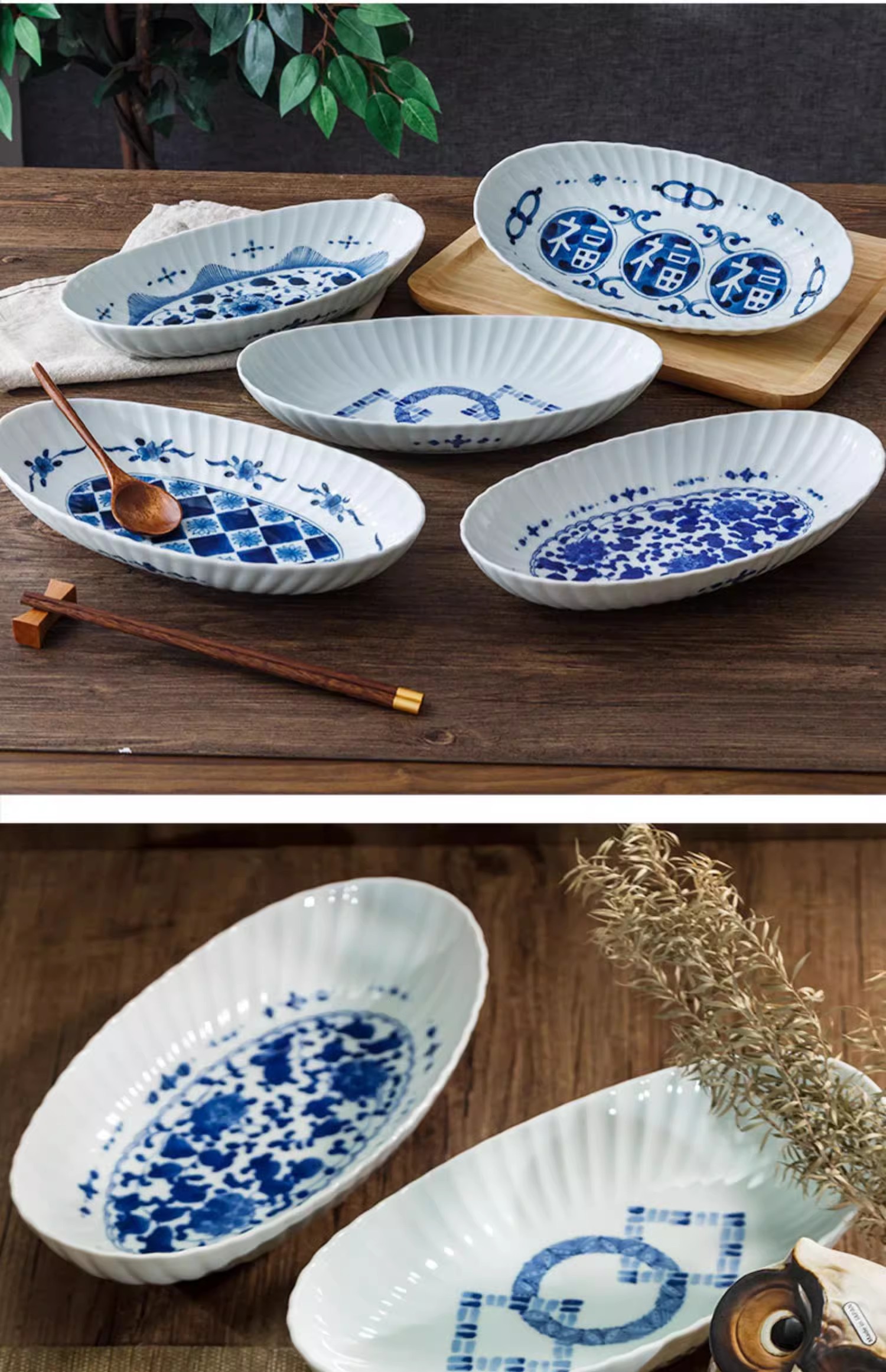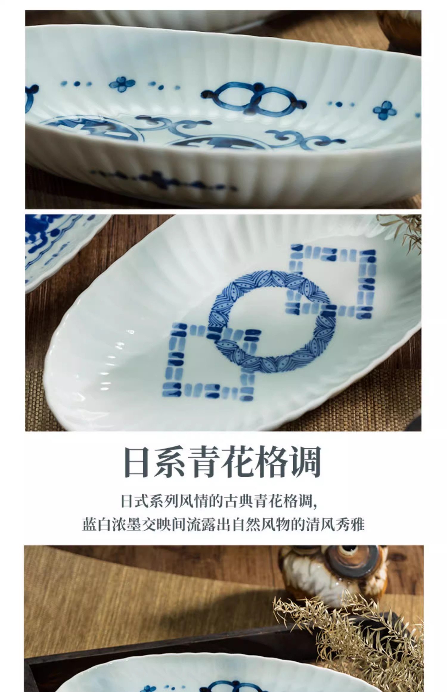 蓝凛堂吉祥菱形椭圆鱼盘(TNMYK9K)