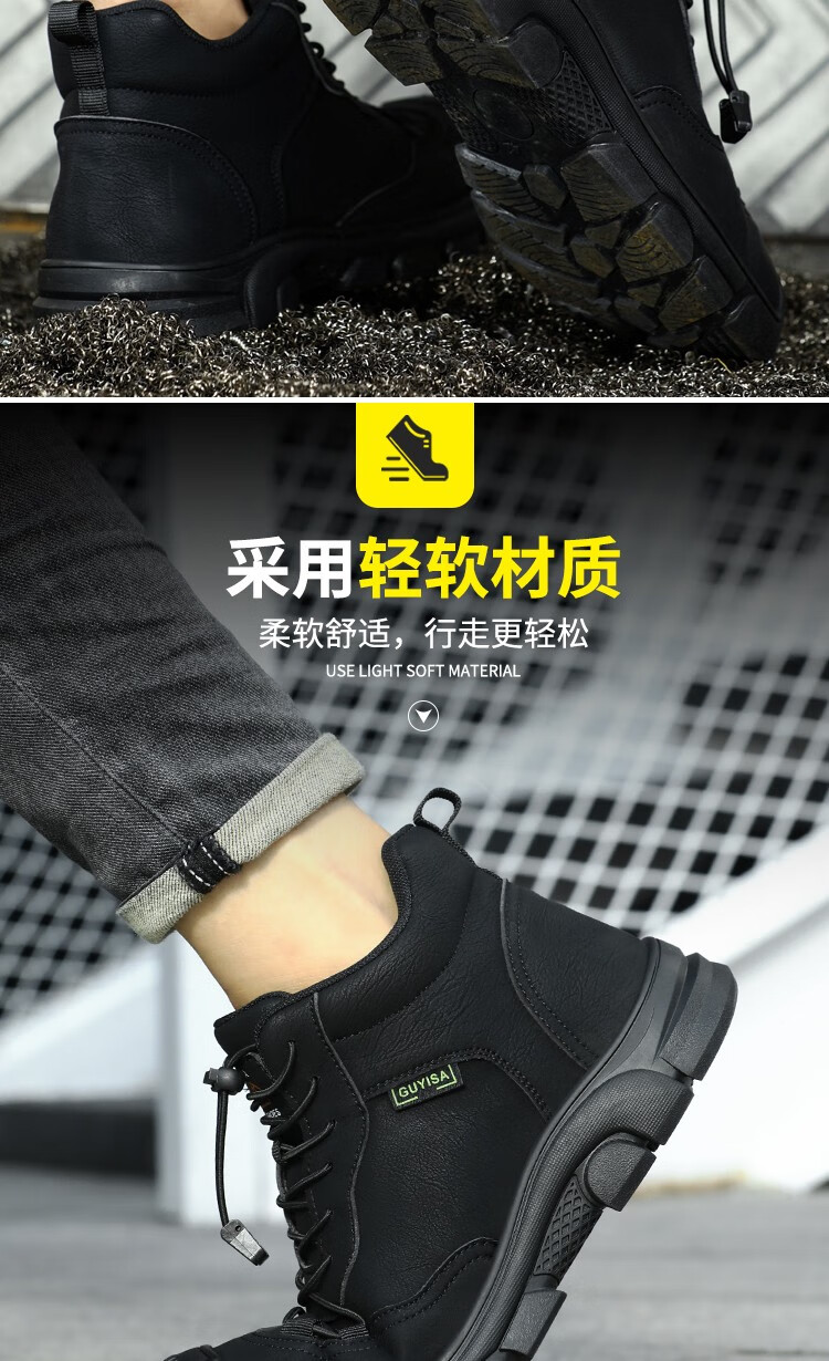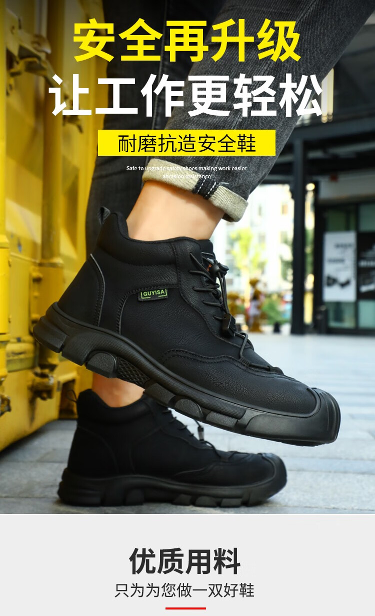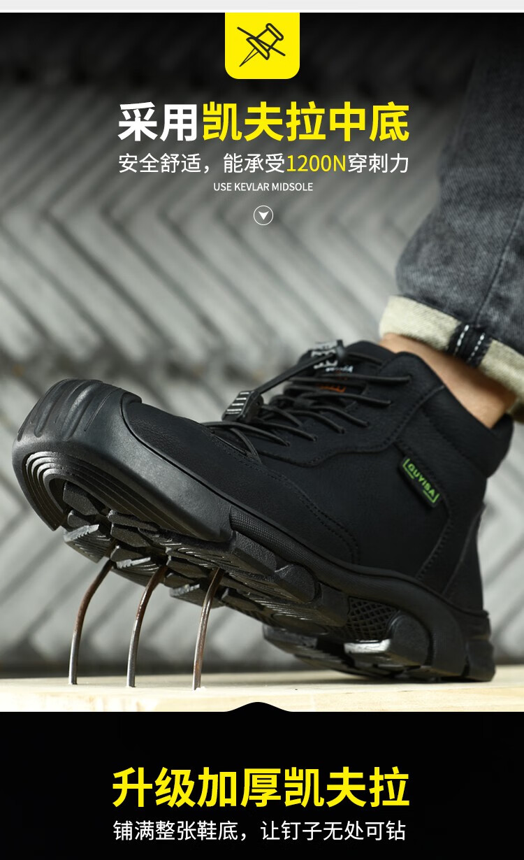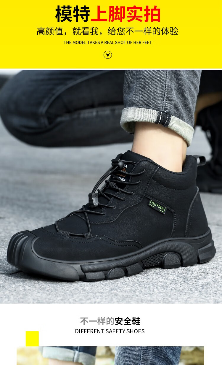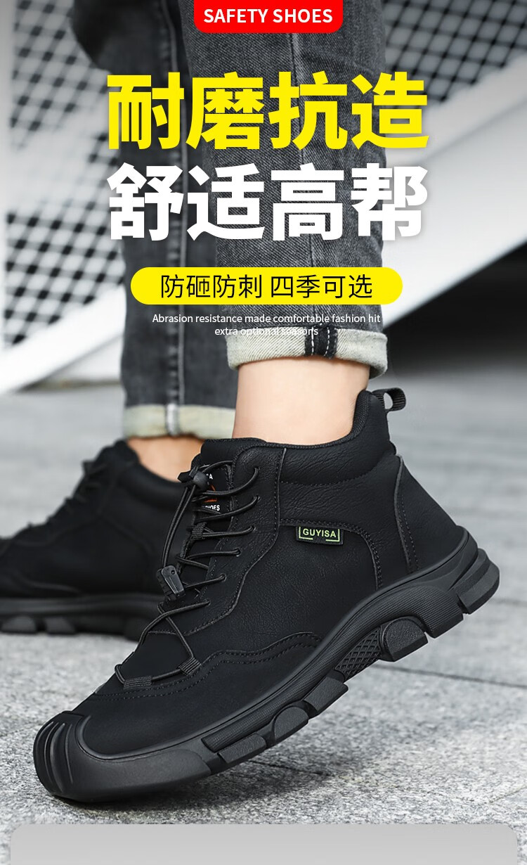 新品高帮秋冬四季款劳保鞋男防砸防刺工作鞋安全鞋橡胶底钢包头耐磨