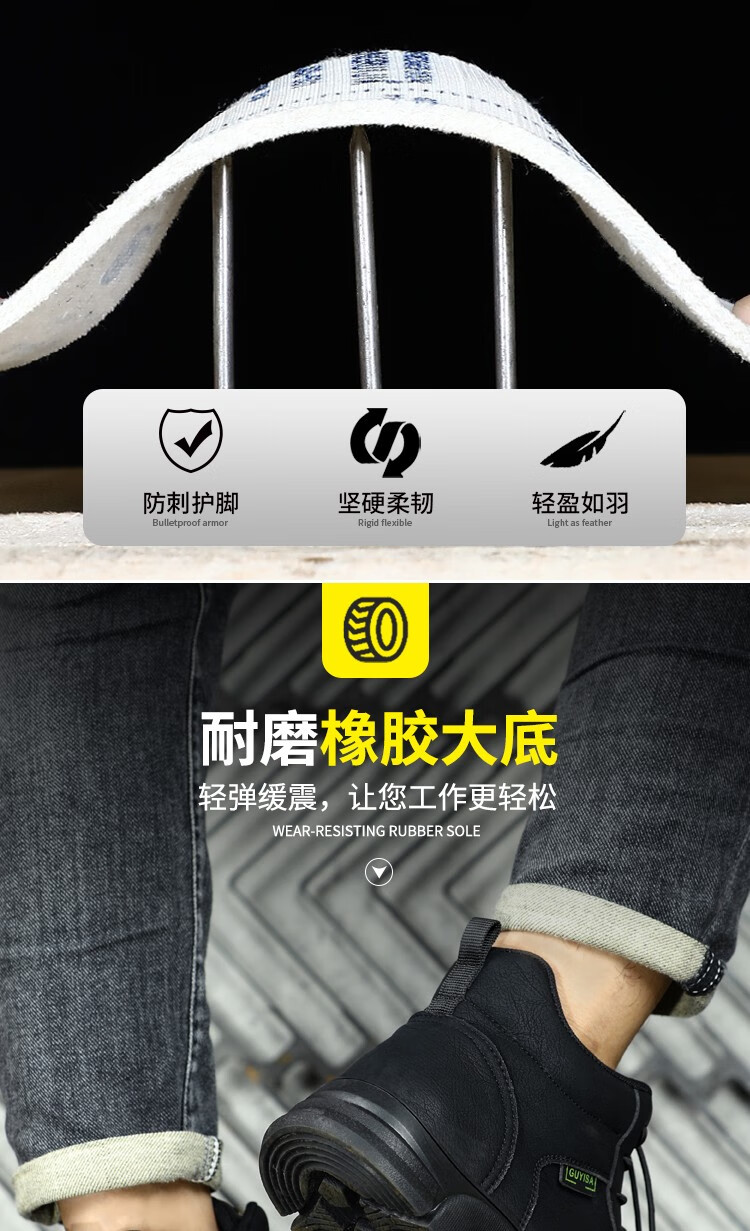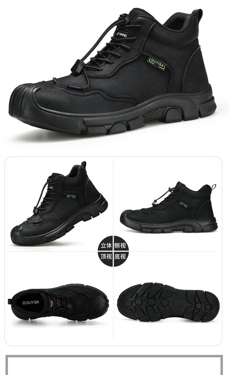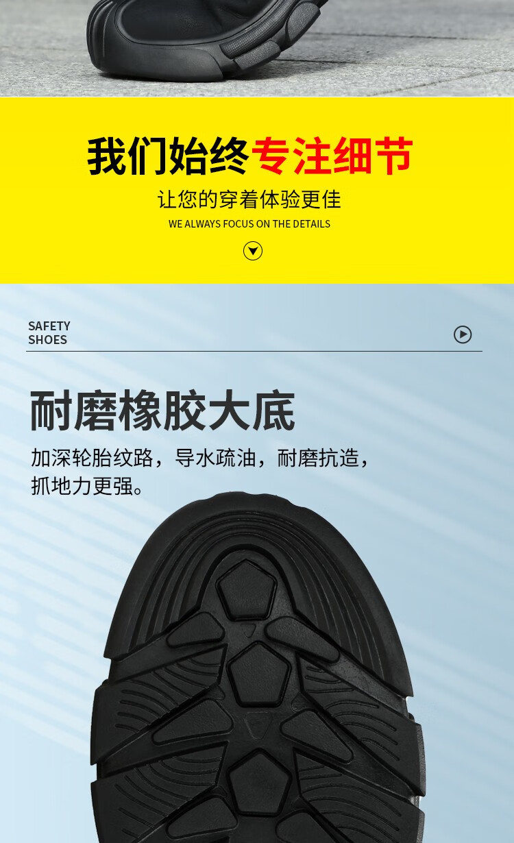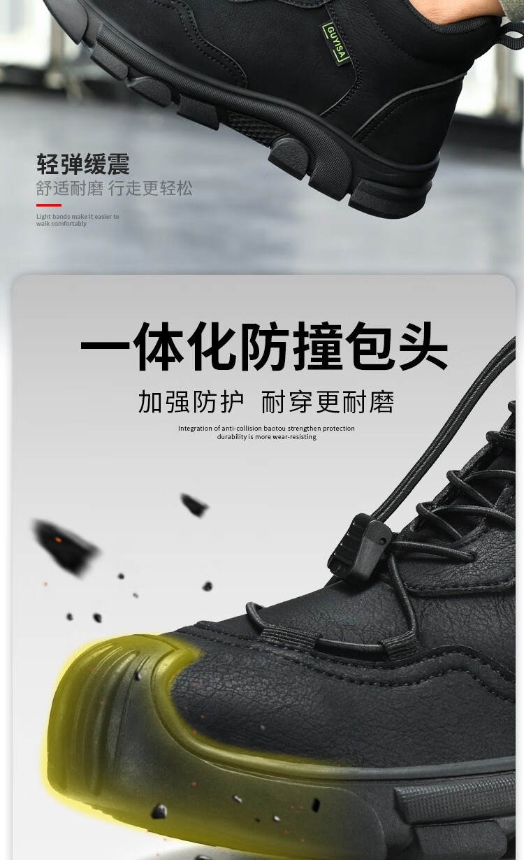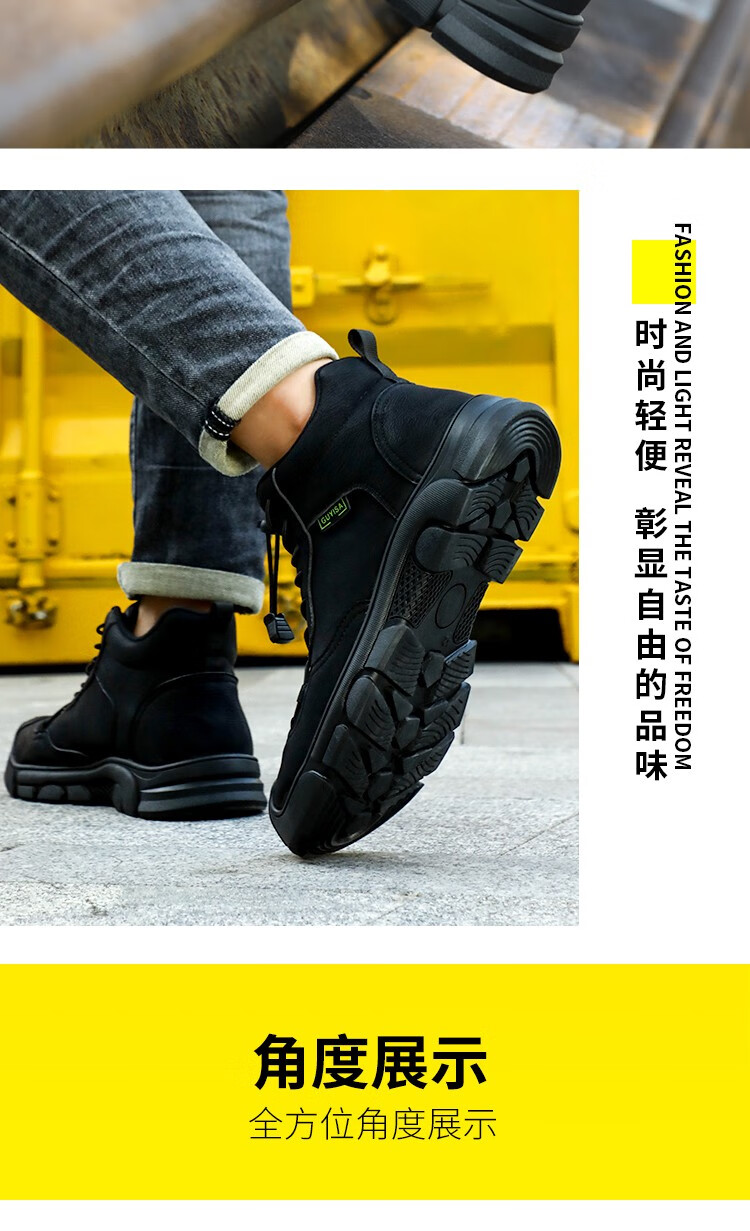 新品高帮秋冬四季款劳保鞋男防砸防刺工作鞋安全鞋橡胶底钢包头耐磨