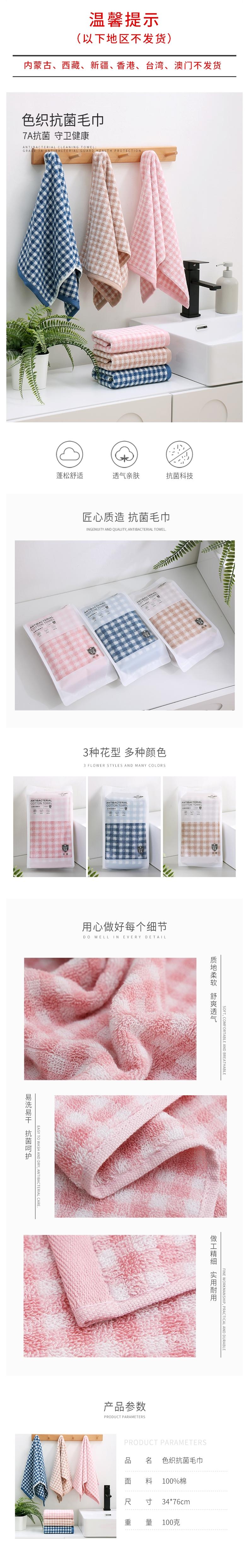 皇后 色织抗菌毛巾3条装 8876XXXXJ