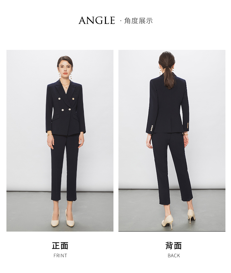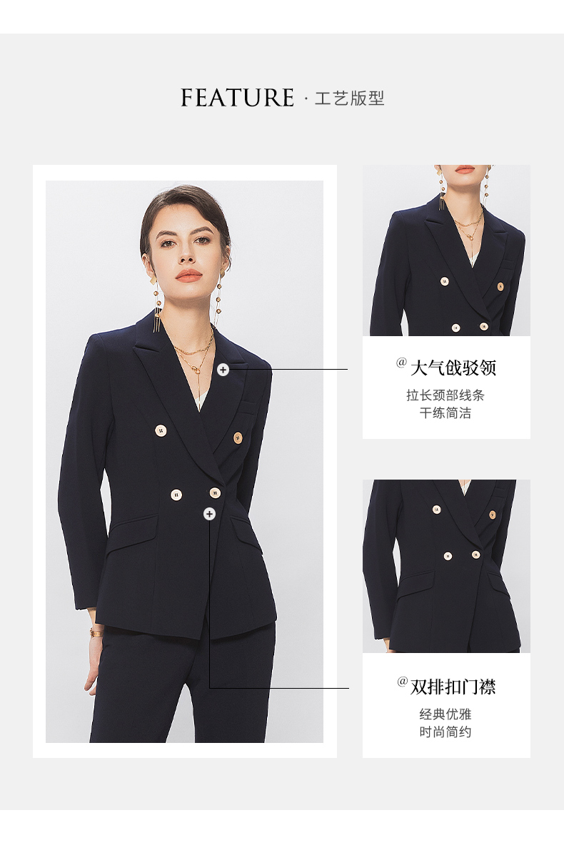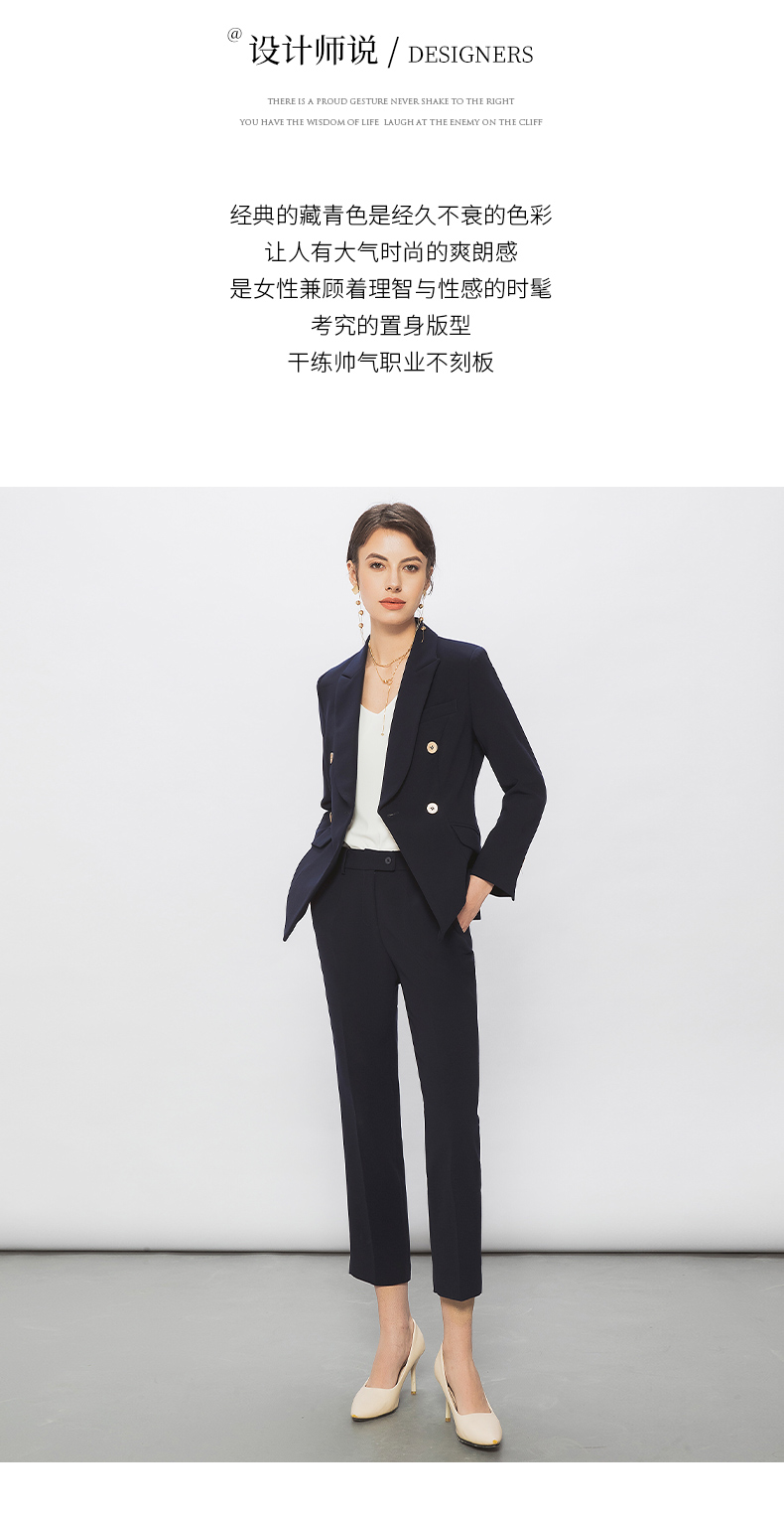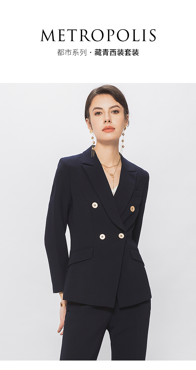 IWY/藏青色职业西装套装女修身西装藏青色双排扣白领通勤工作服C11355+P11356