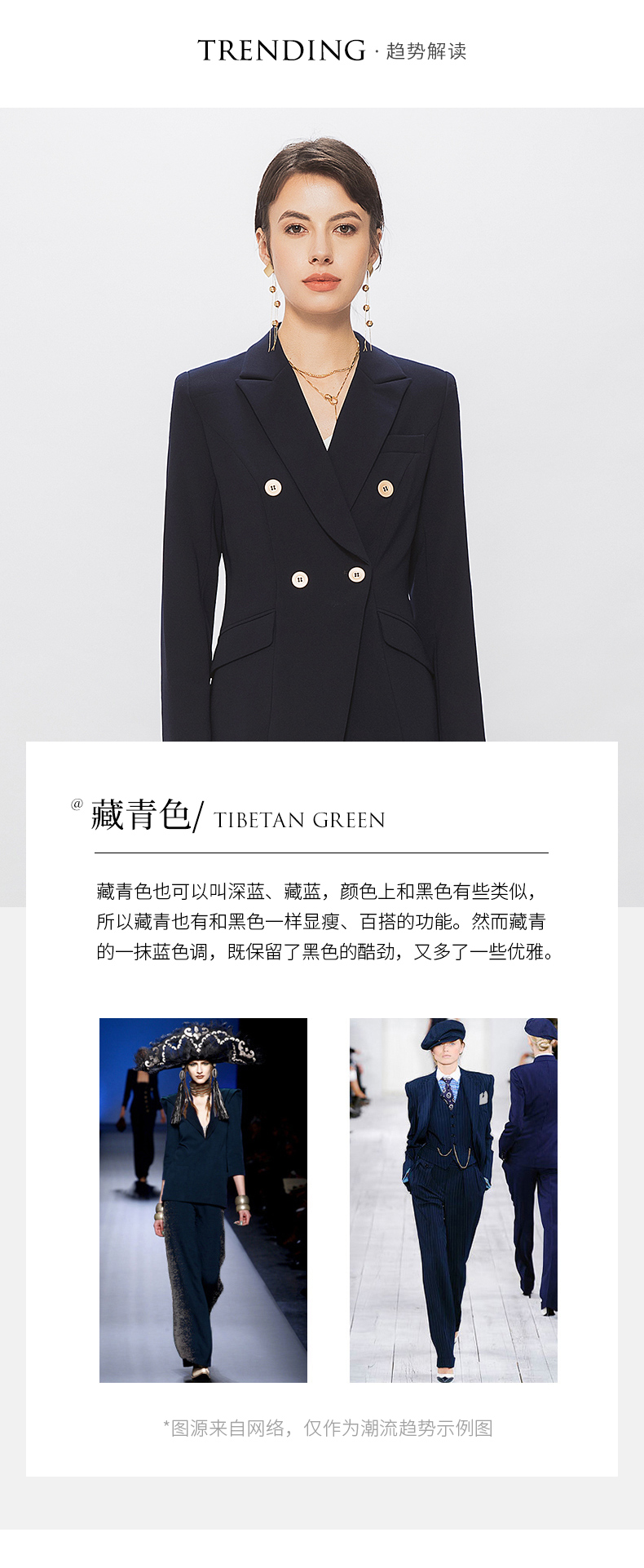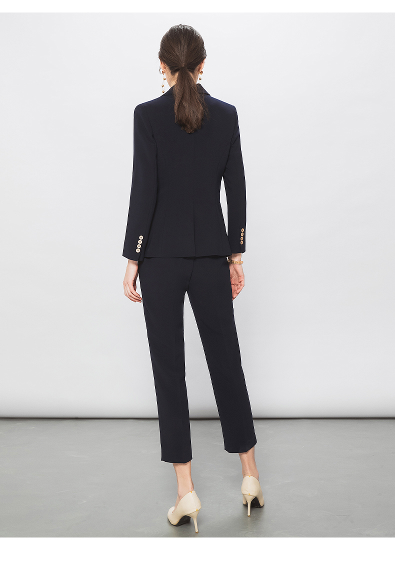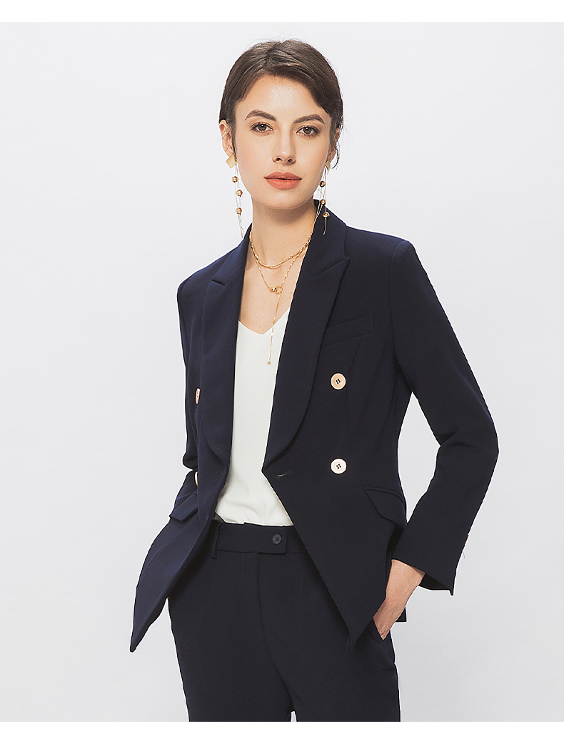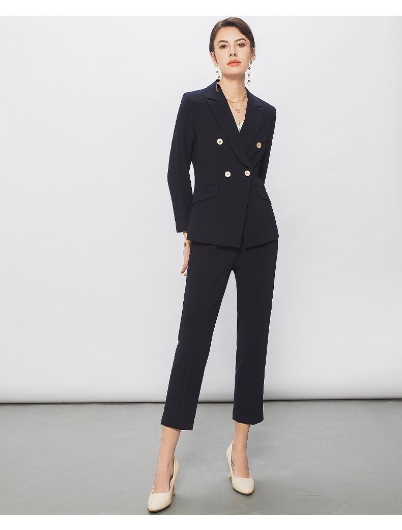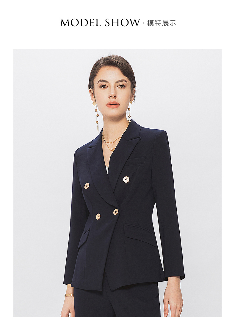 IWY/藏青色职业西装套装女修身西装藏青色双排扣白领通勤工作服C11355+P11356