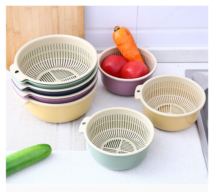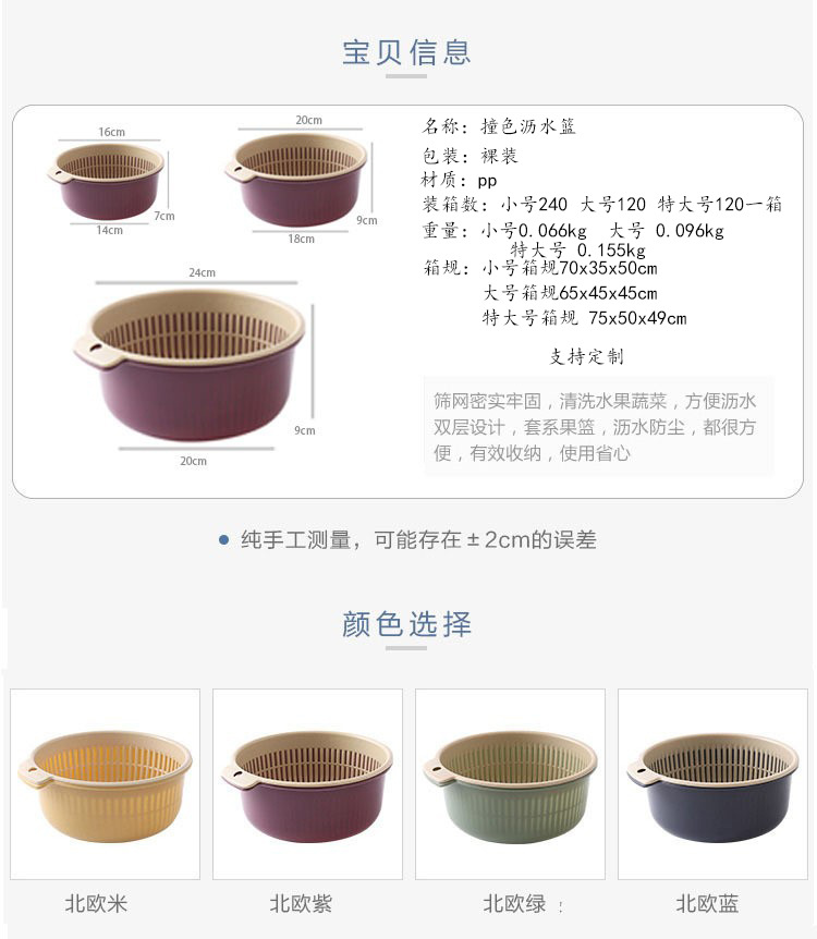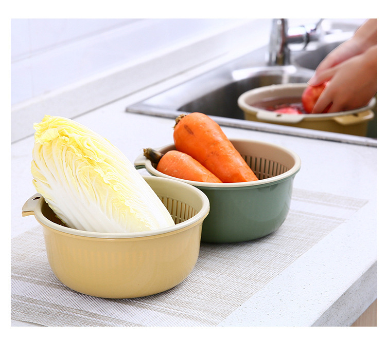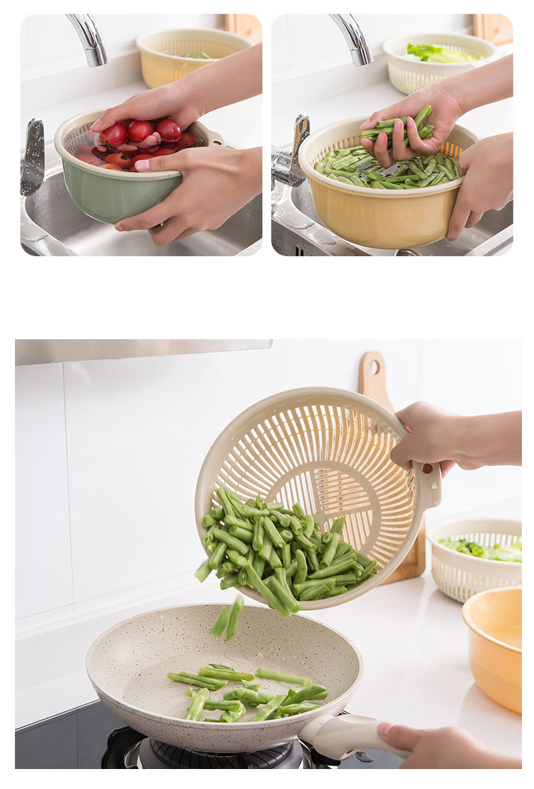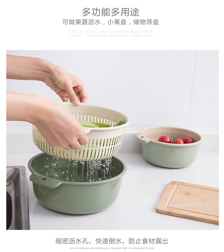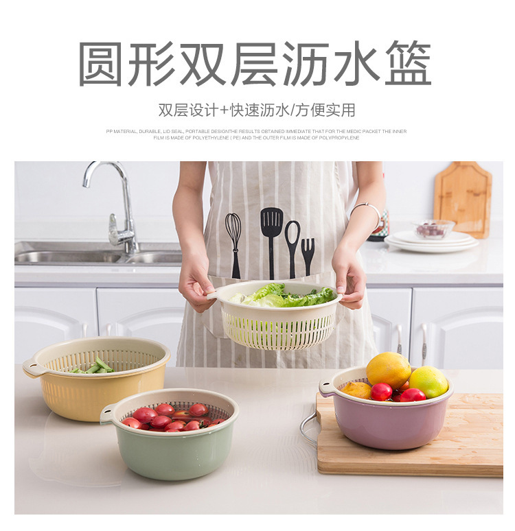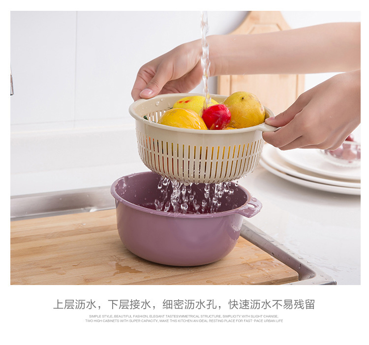 【双层设计+快速沥水!方便实用】厨房用品双层塑料沥水篮 加厚加大塑料收纳洗菜篮蔬菜沥水篮。ry