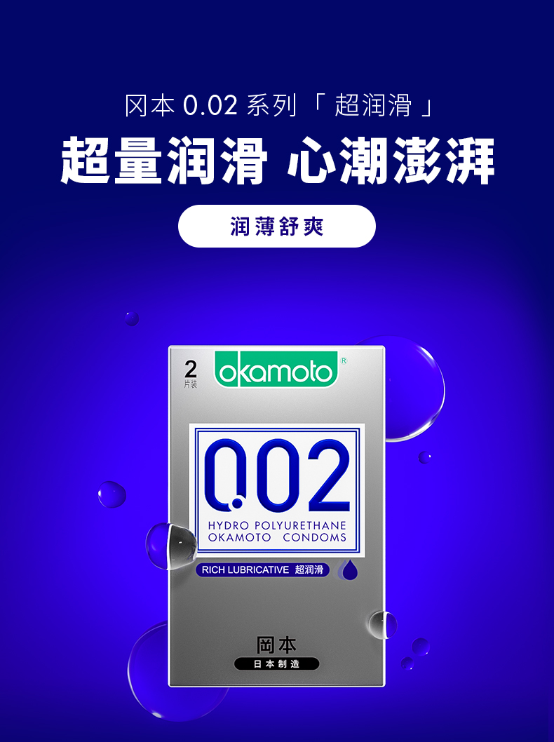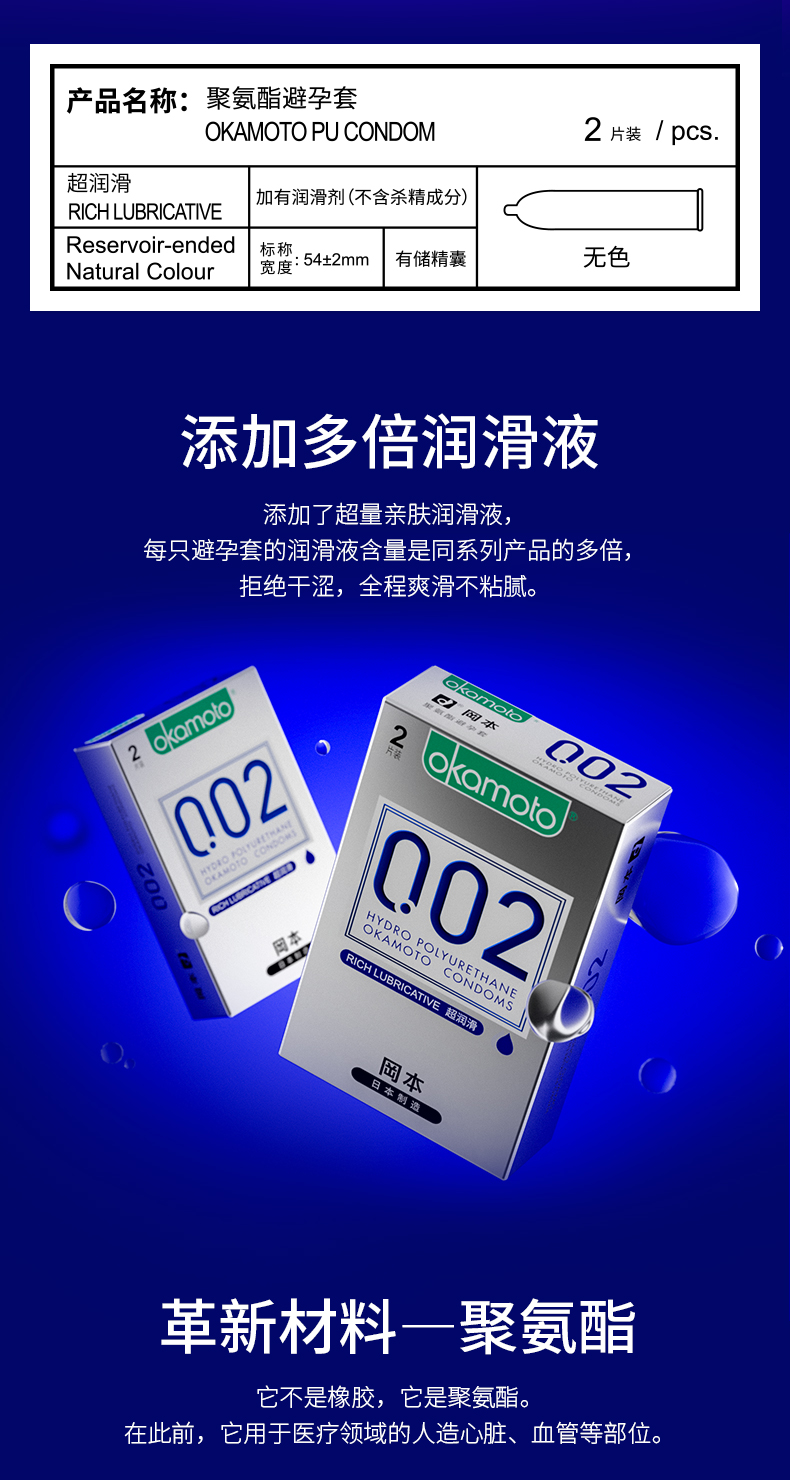 冈本002避孕套 安全套 超薄裸入润滑男专用持久0.02mm 成人情趣计生用品避孕套 冈本002超润滑2只