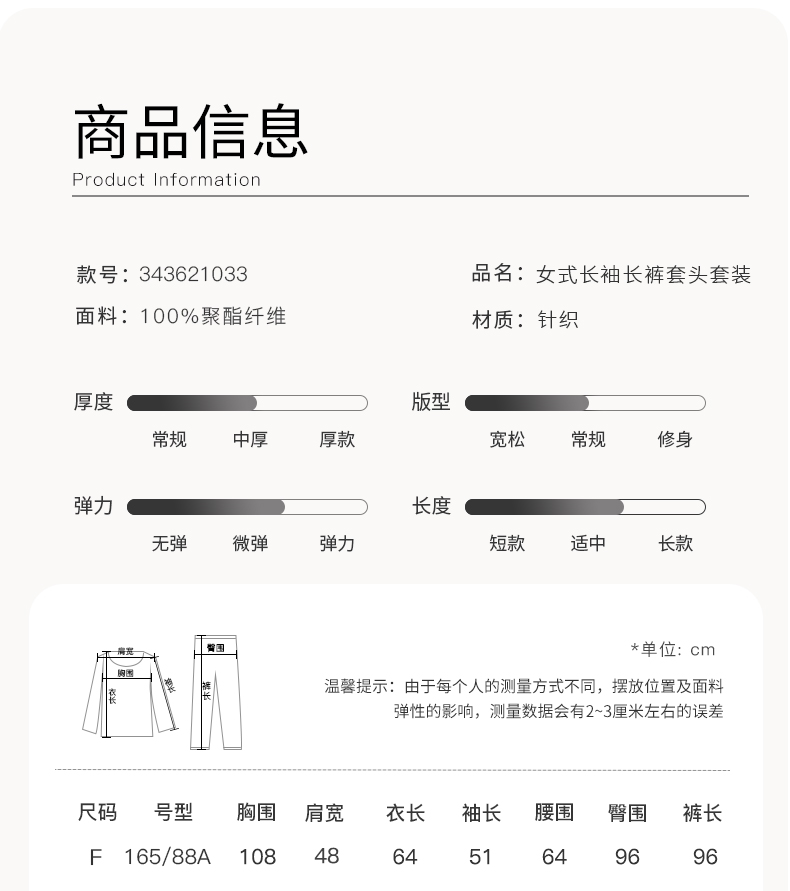 康妮雅女式长袖长裤套头套装