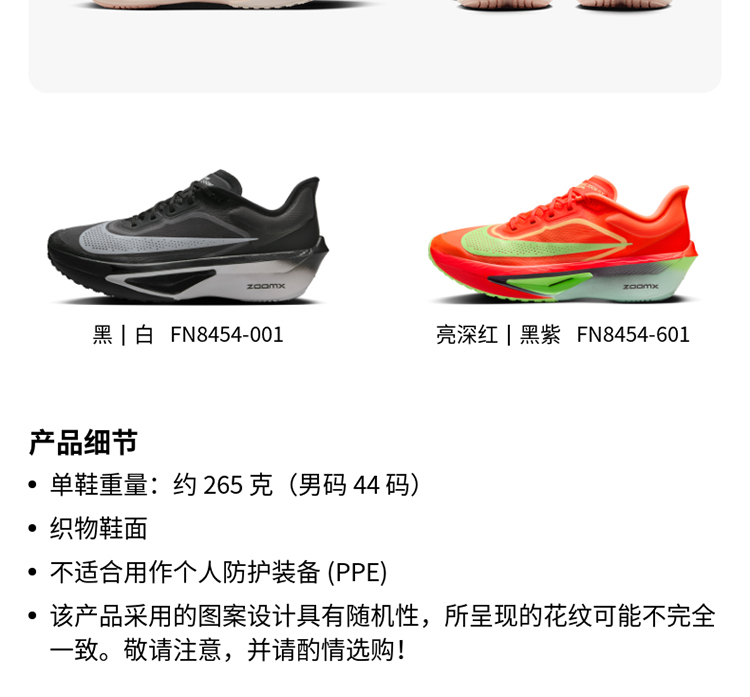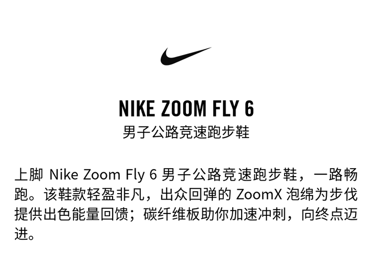Nike 耐克 ZOOM FLY 6 男款跑步训练专业竞速碳板跑步鞋