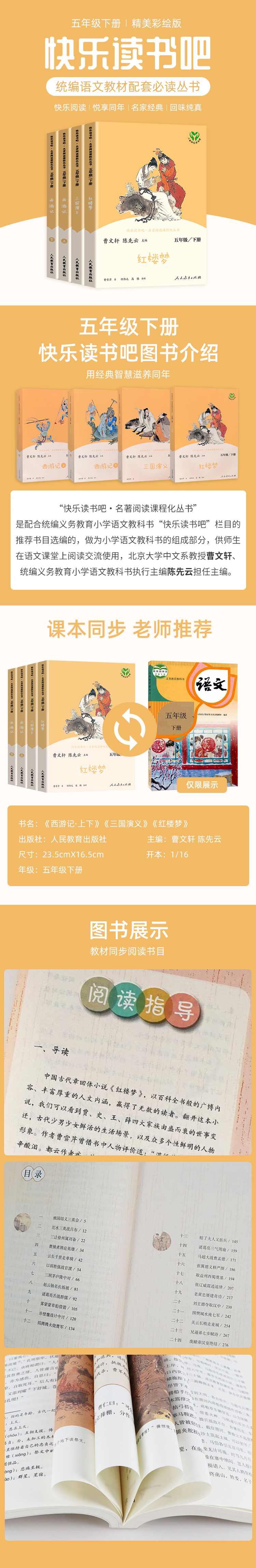 快乐读书吧五年级下册小学生版正版西游记(上下2册)红楼梦 三国演义青少年版完整版