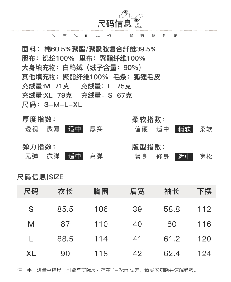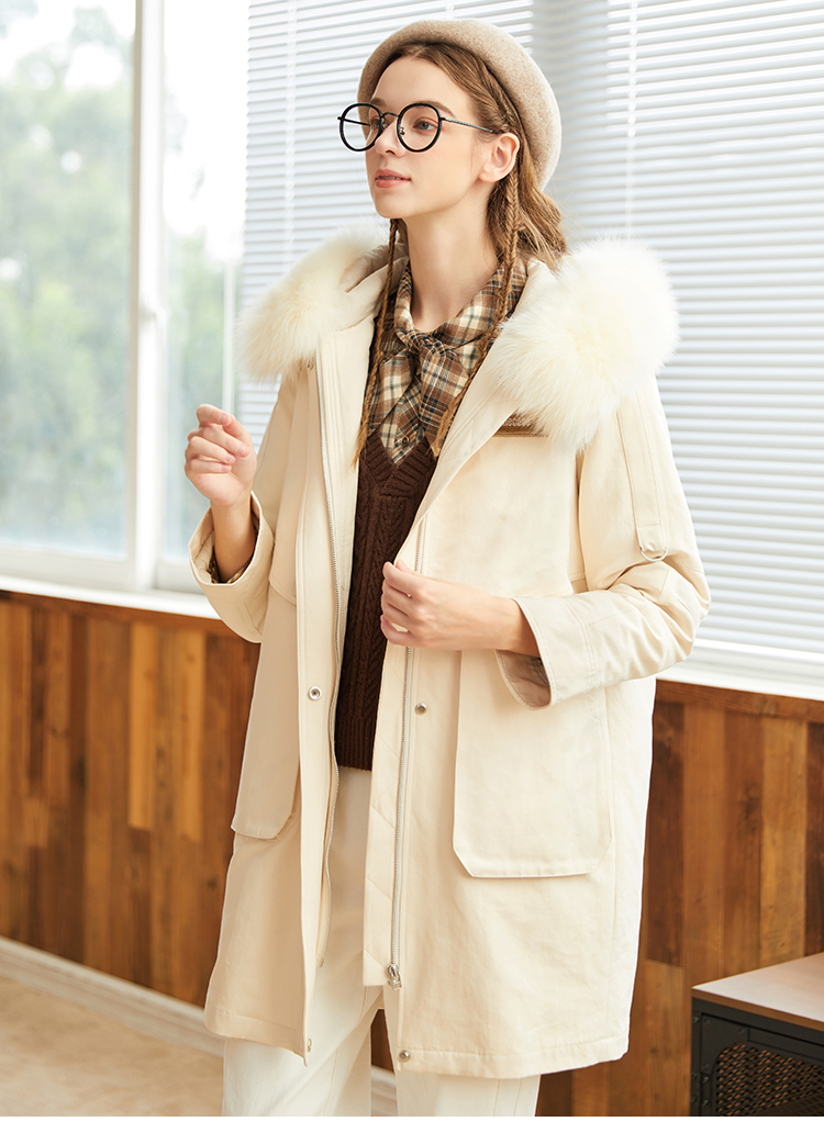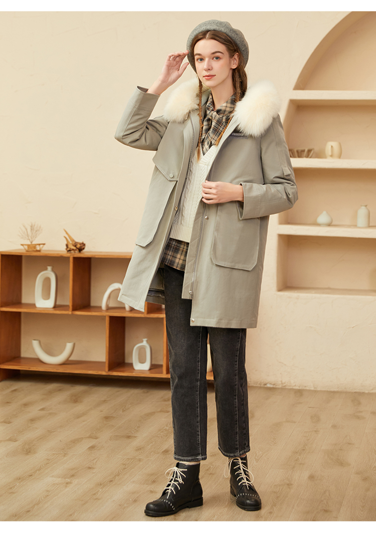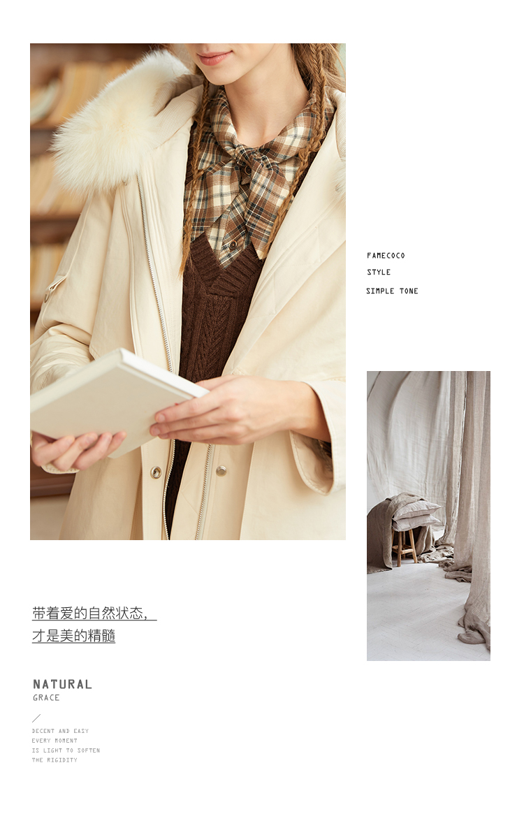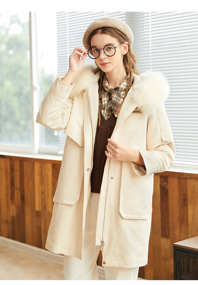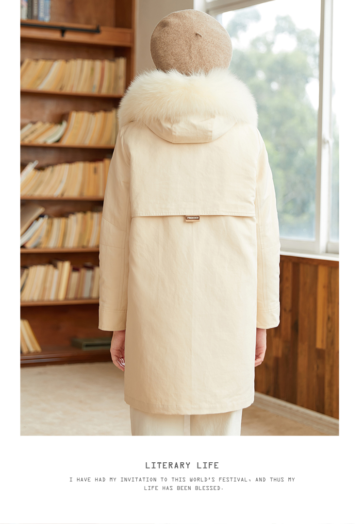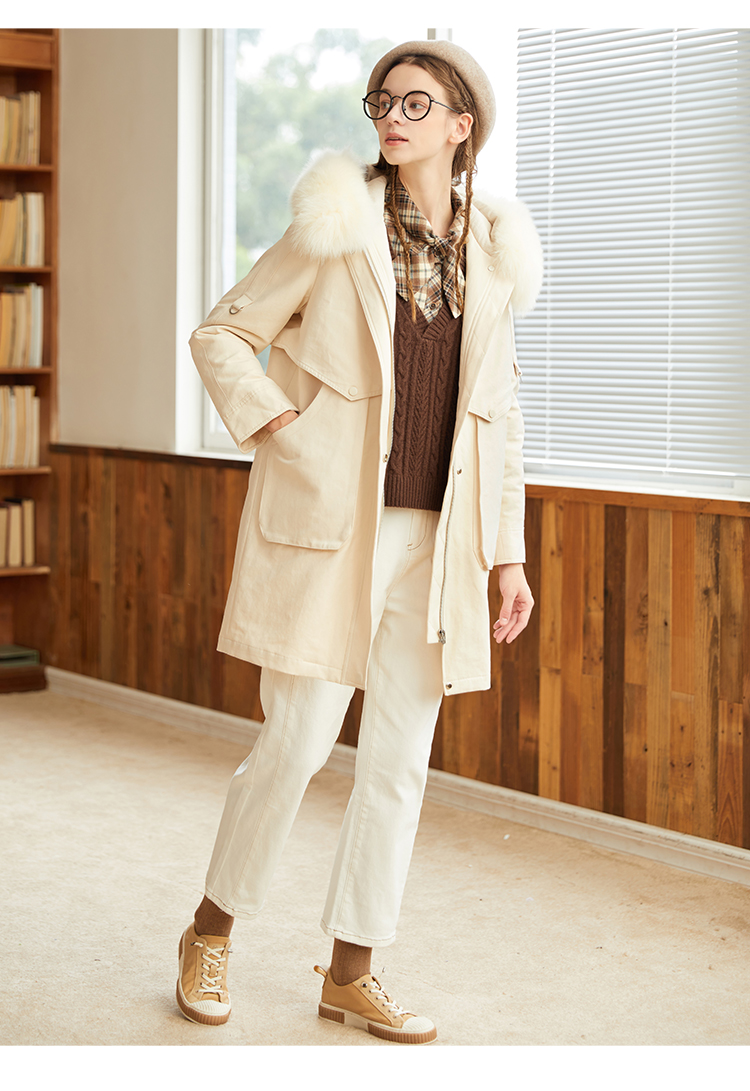 Famecoco范可儿原创设计派克羽绒服女冬加厚大毛领工装外套中长款F228AD001