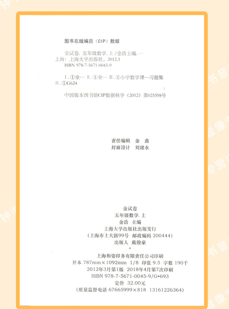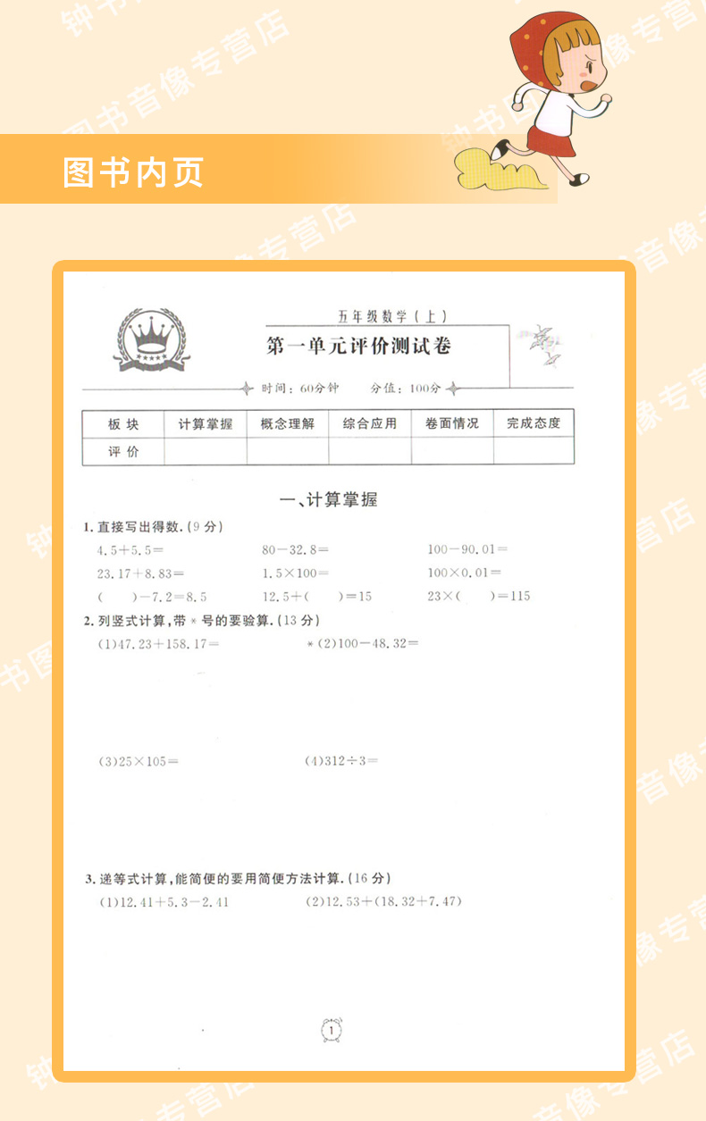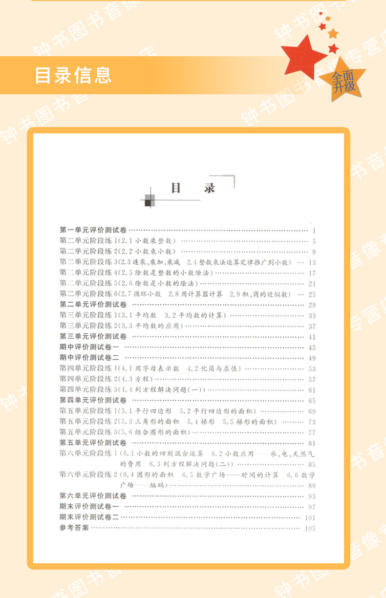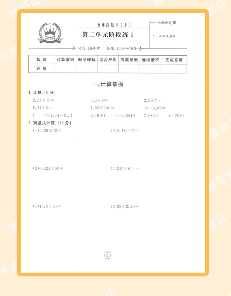 新版钟书金牌教辅 金试卷 数学 5年级上/五年级上 数学 第一学期 满分训练与测试 分层训练 单元检测易错专项期中期末卷课外练习卷
