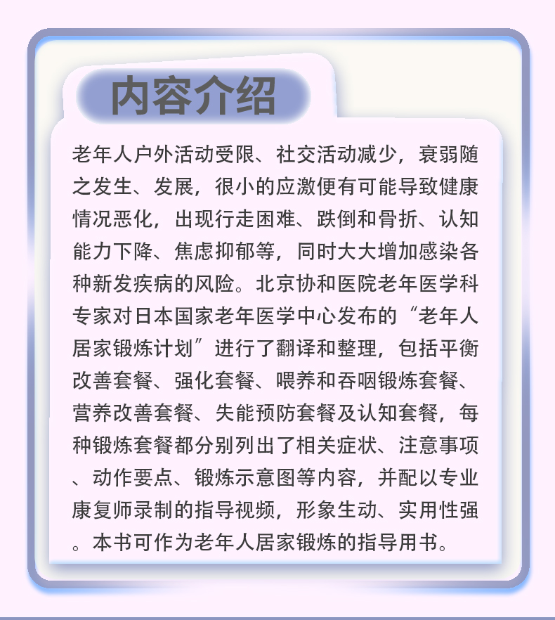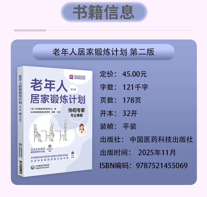 老年人居家锻炼计划(视频版) 第2二版 北京协和医院老年医学科 康琳 本书可作为老年人居家锻炼的指导用书 中国医药科技出版社