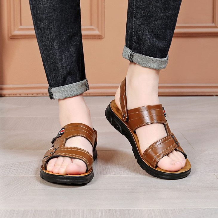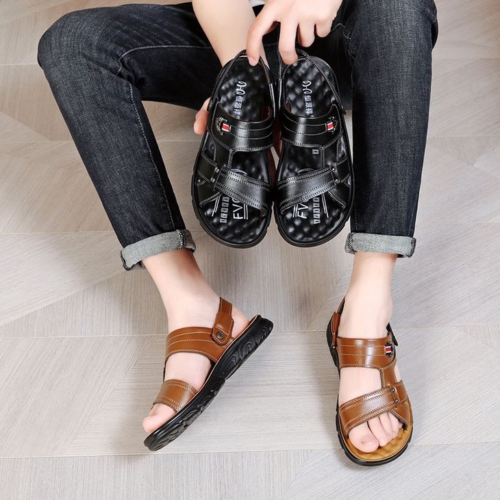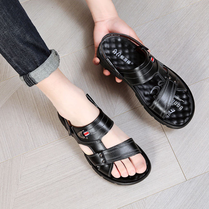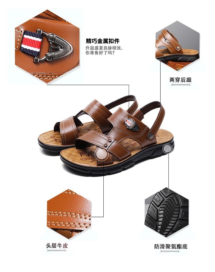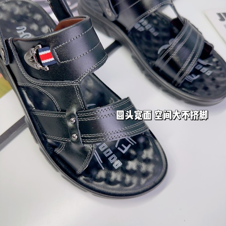 恒源祥•国内一线品牌送礼首选 夏日经典好穿不过时• 鞋面进口头层牛皮 脚感柔软舒适 一双=凉鞋×拖鞋两种穿法✔随心切换 礼盒装送爸爸/亲人首选 高端大气上档次