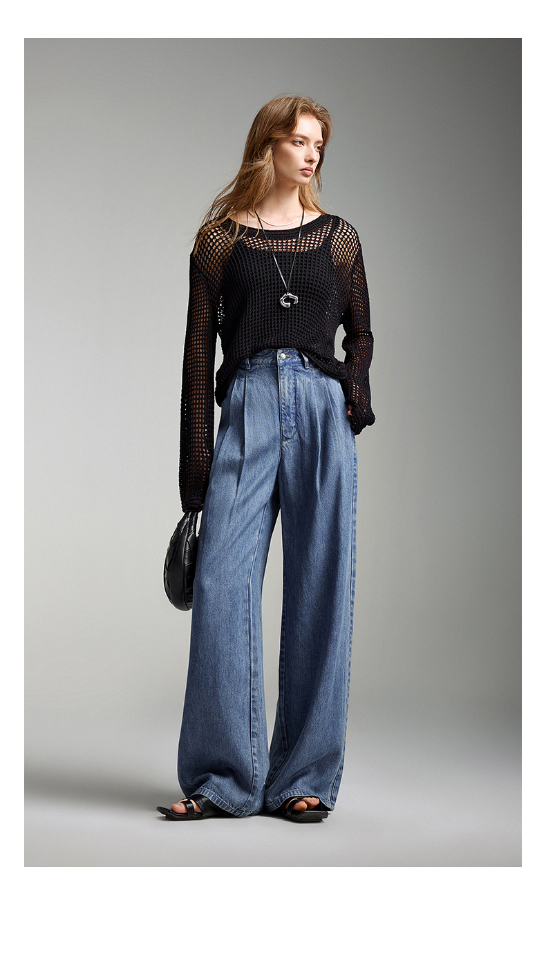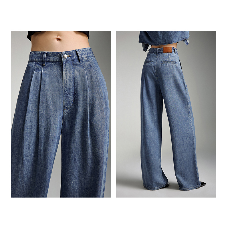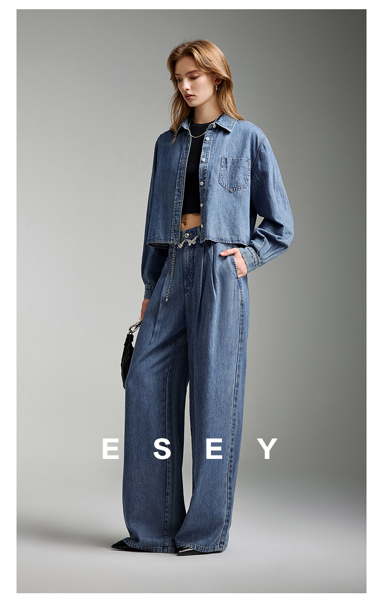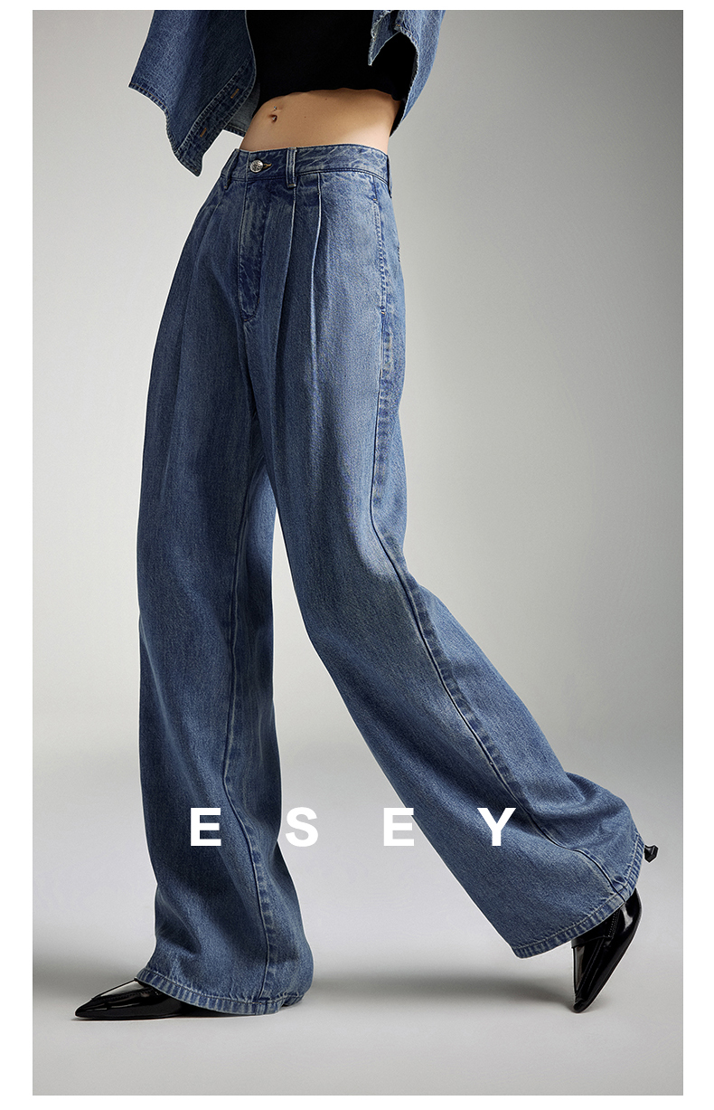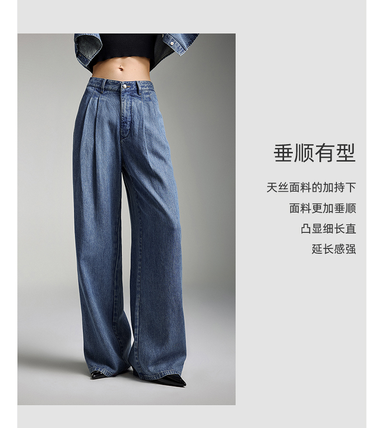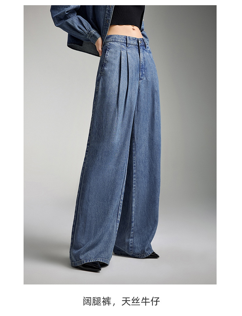 【3折!高定天丝牛仔】逸阳夏新款奥地利兰精天丝霜感牛仔阔腿裤5878