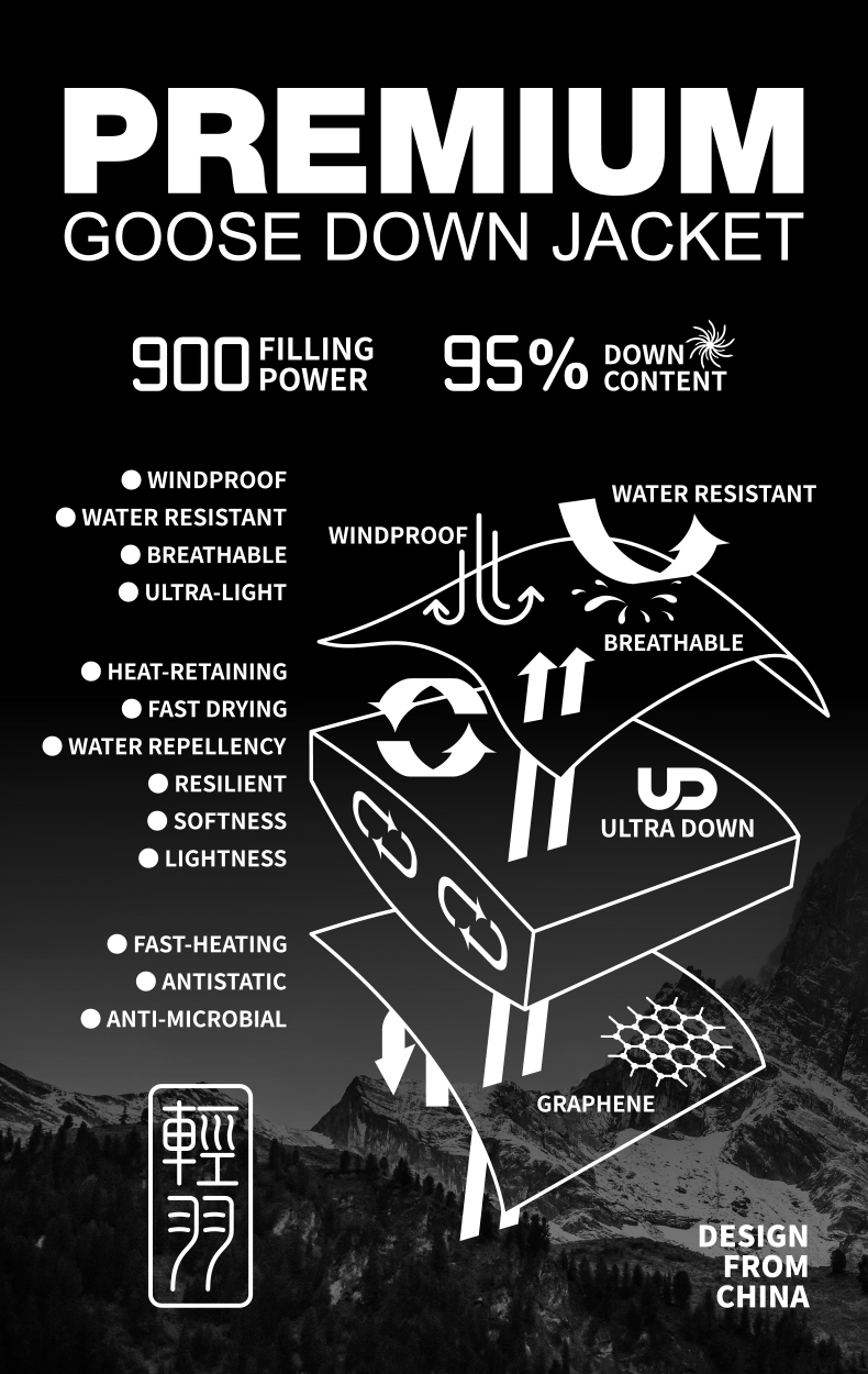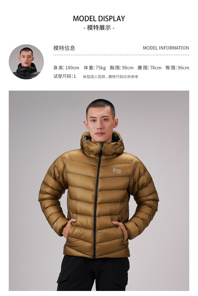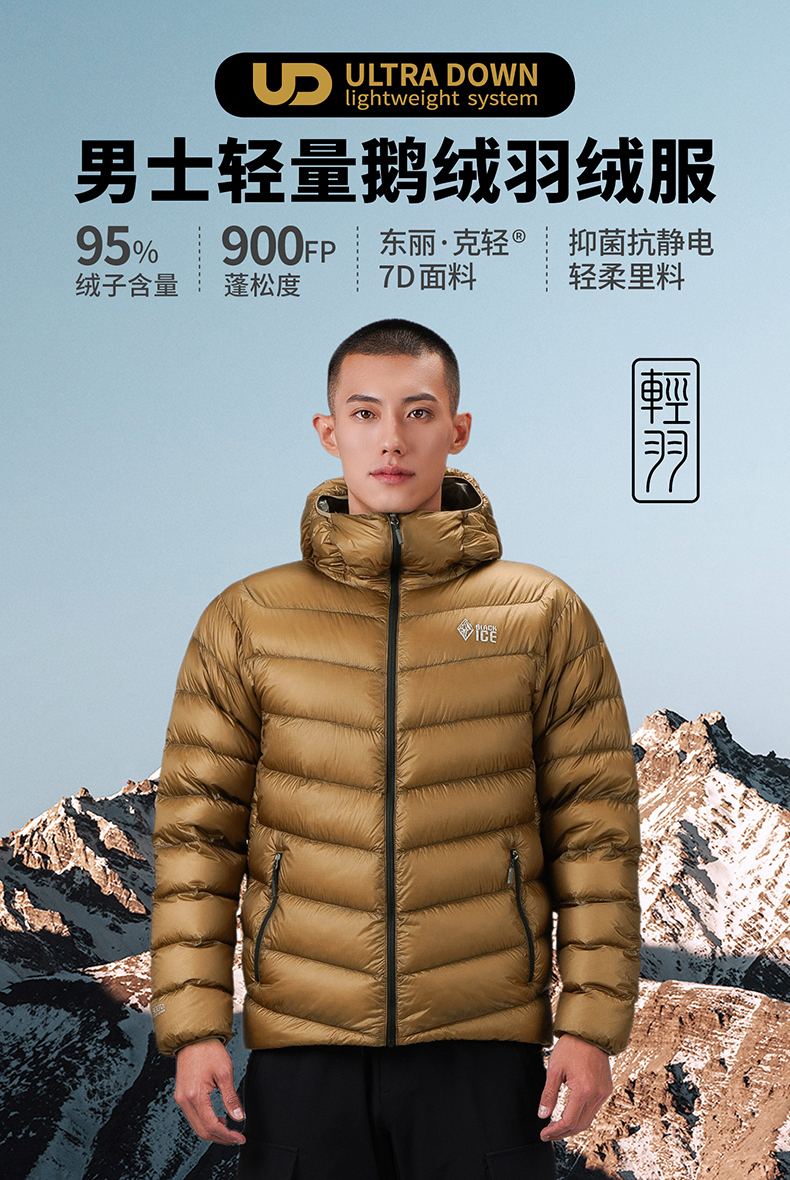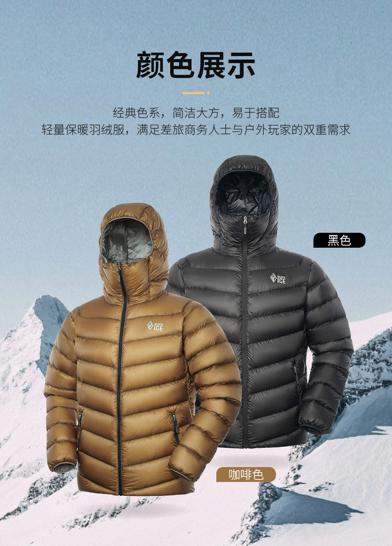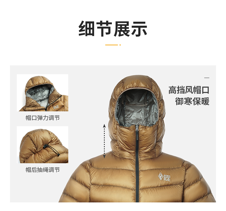 冬季新品黑冰900蓬羽绒服男户外防寒保暖轻量鹅绒连帽外套8604