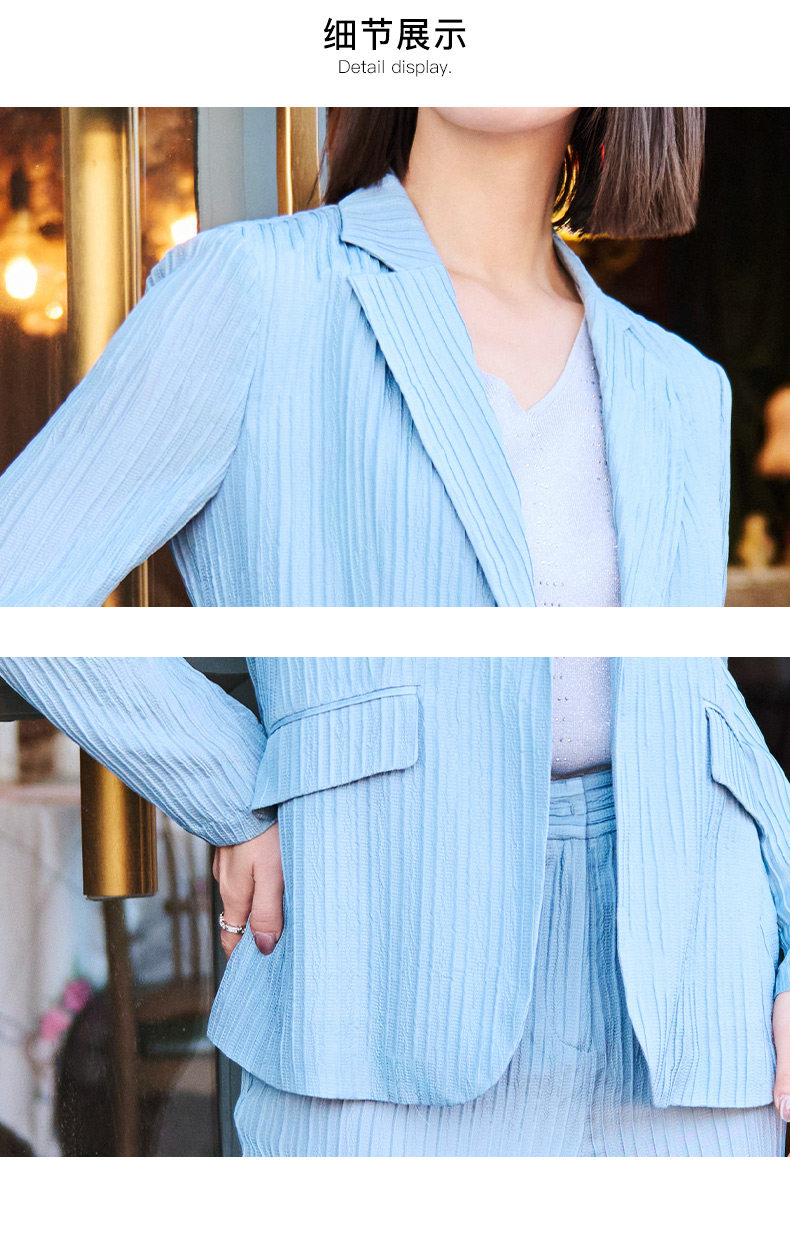 皮尔卡丹女装新款都市干练高频百搭短袖西服P4247L4005W3