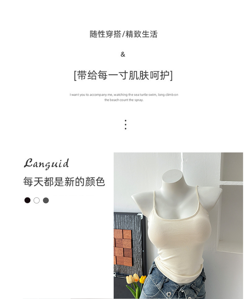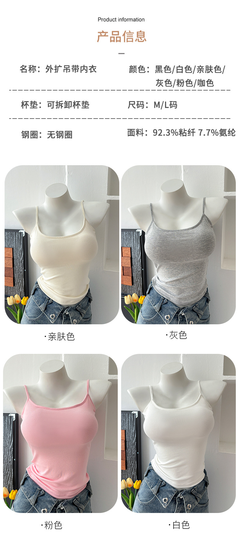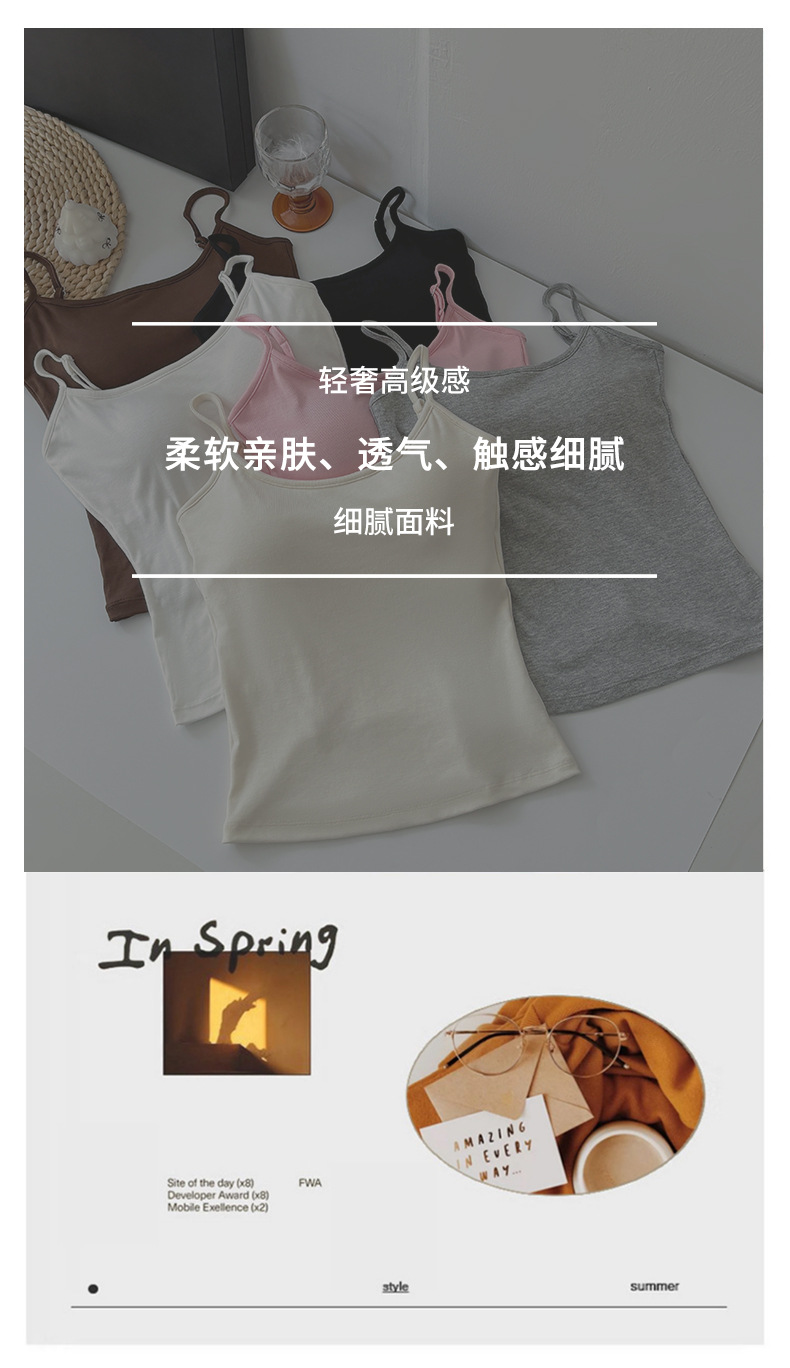 【穿出漫画胸❗️小胸显大吊带背心】甄选亲肤面料,手感滑糯柔软弹性佳,随意搭配都让时髦感爆棚,带胸垫内搭辣妹外穿上衣夏季L