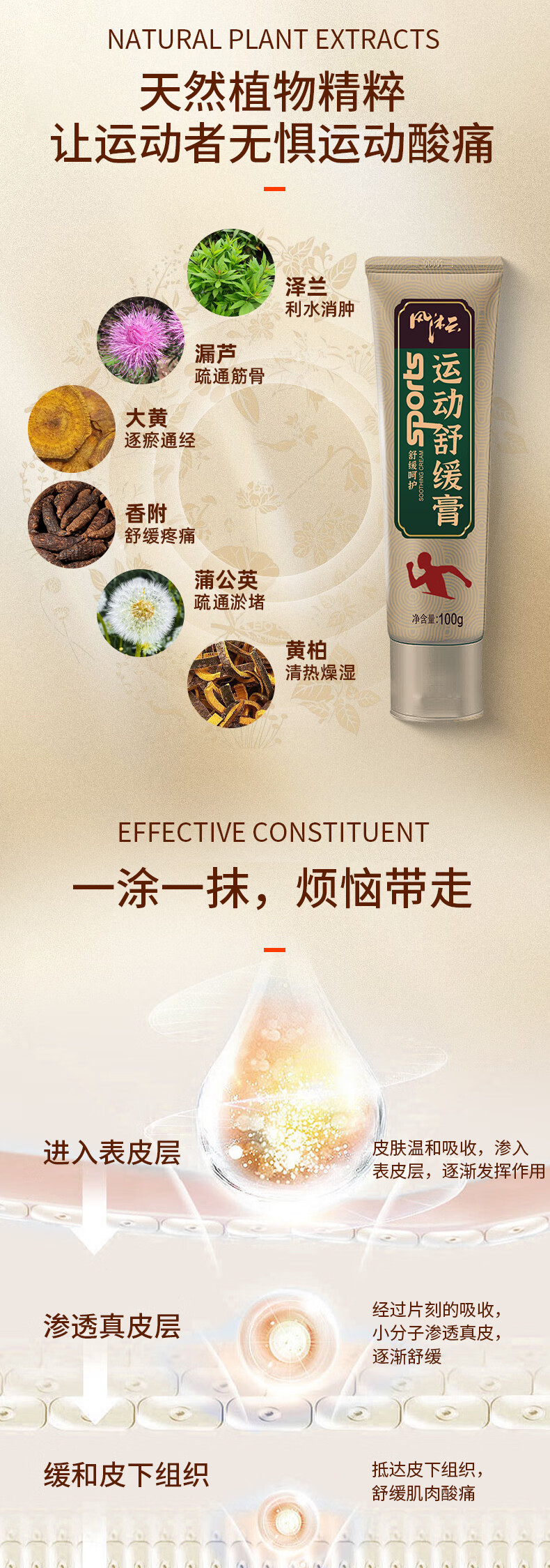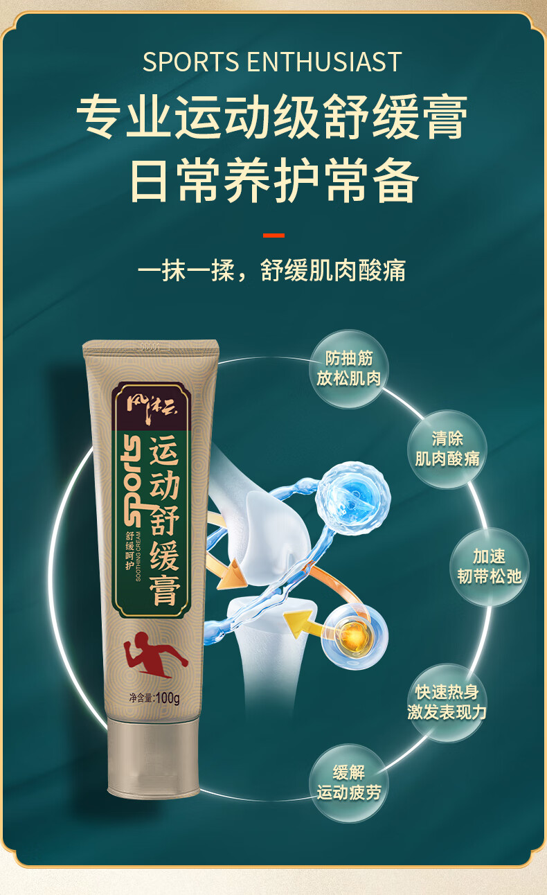 风沐云【官方正品】运动舒缓膏按摩膏缓解酸痛小绿管氨糖护理膏关节疼痛(TBZG)
