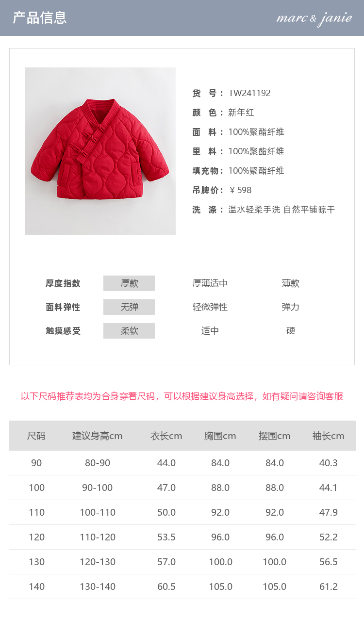 马克珍妮秋冬装 男女童国风新中式交领夹棉保暖外套 241192