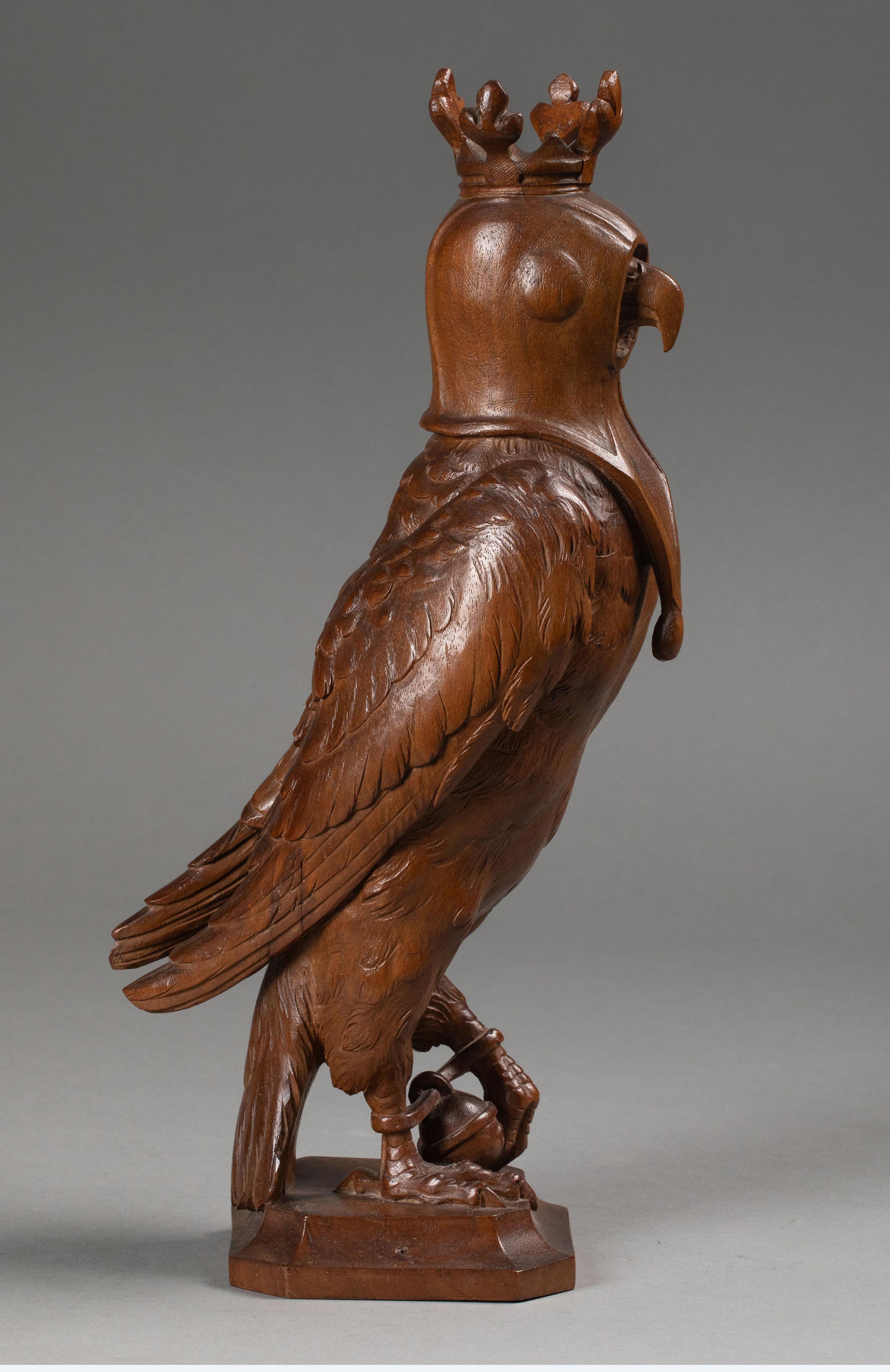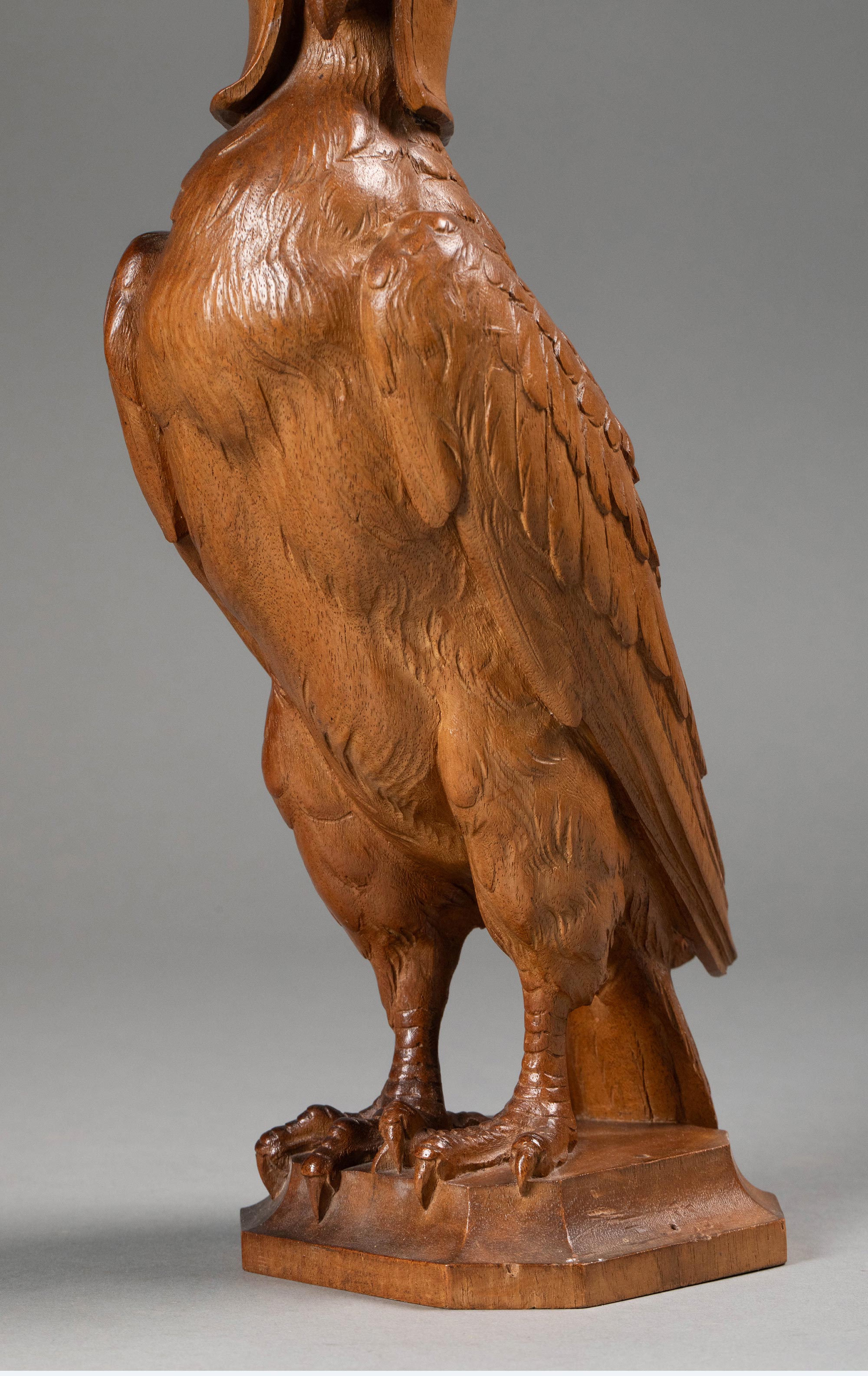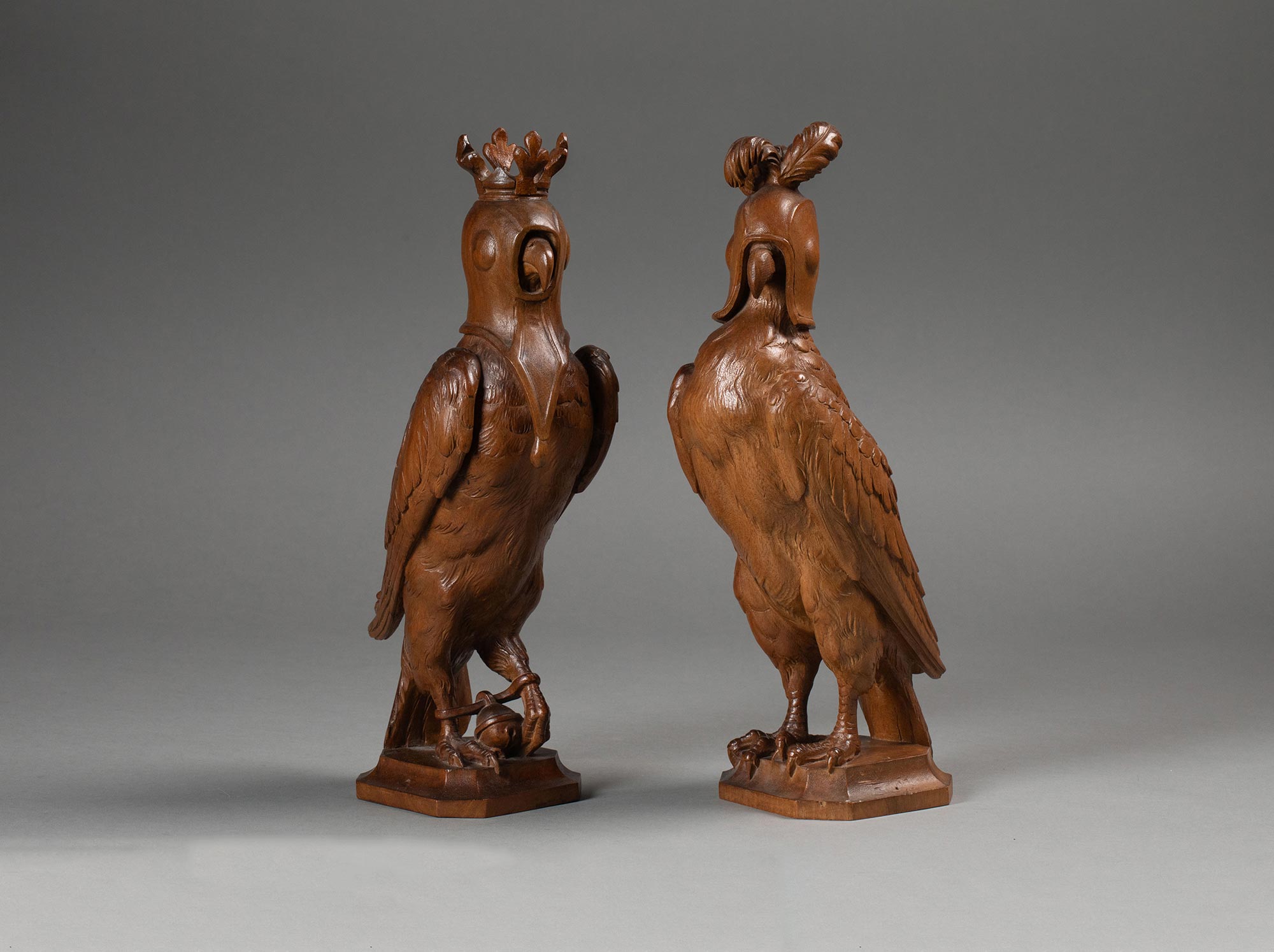 19世纪法国出品黑森林风格猎鹰造型胡桃木精雕摆件一对