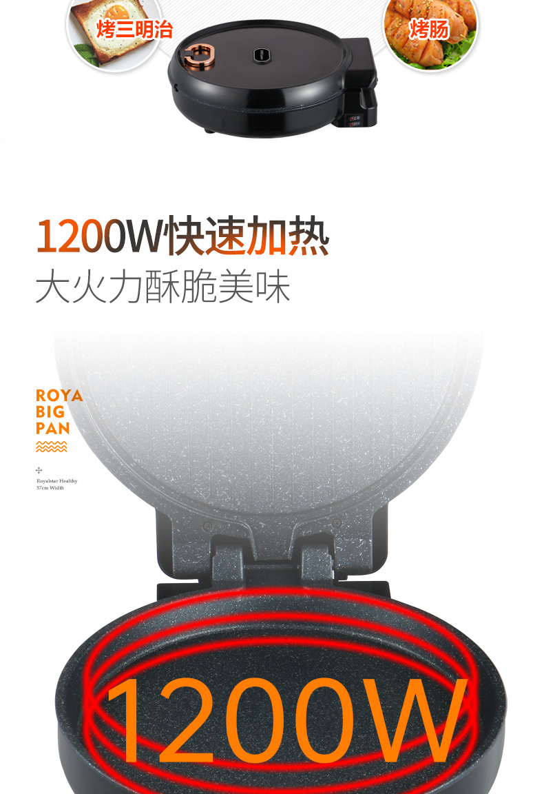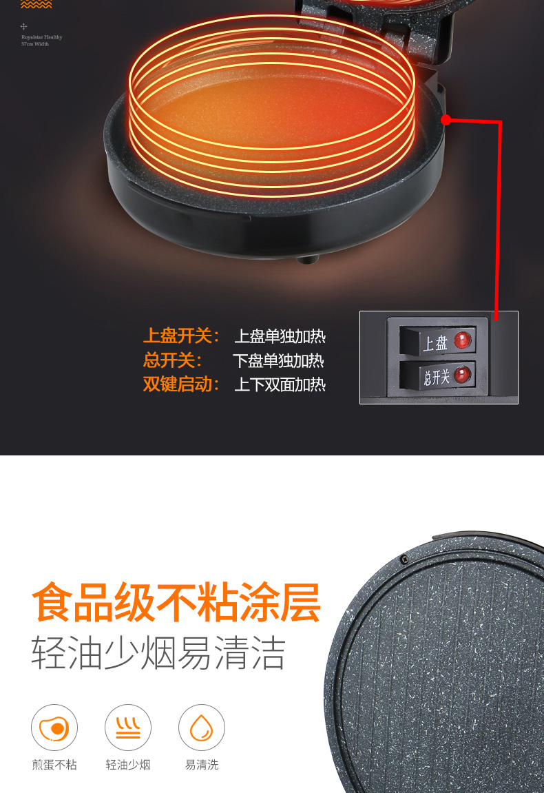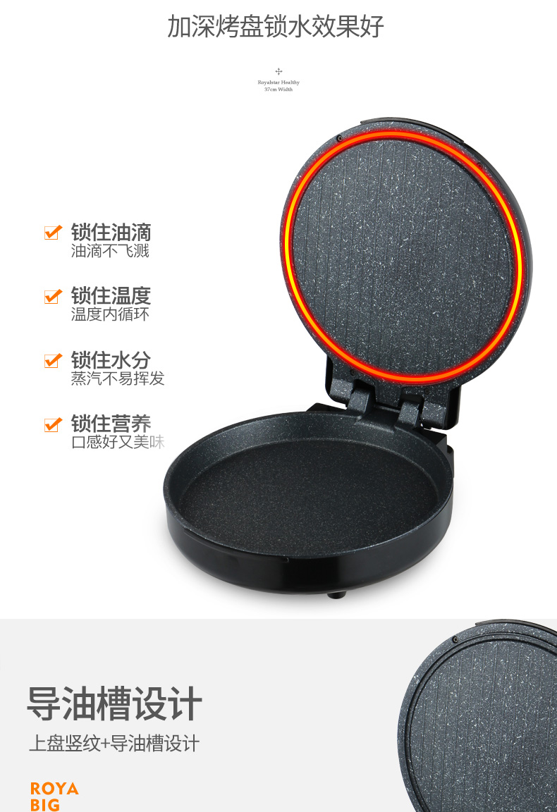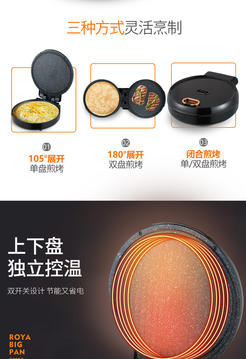 荣事达电饼铛胶木外壳耐高温双面独立控温180度自由开合