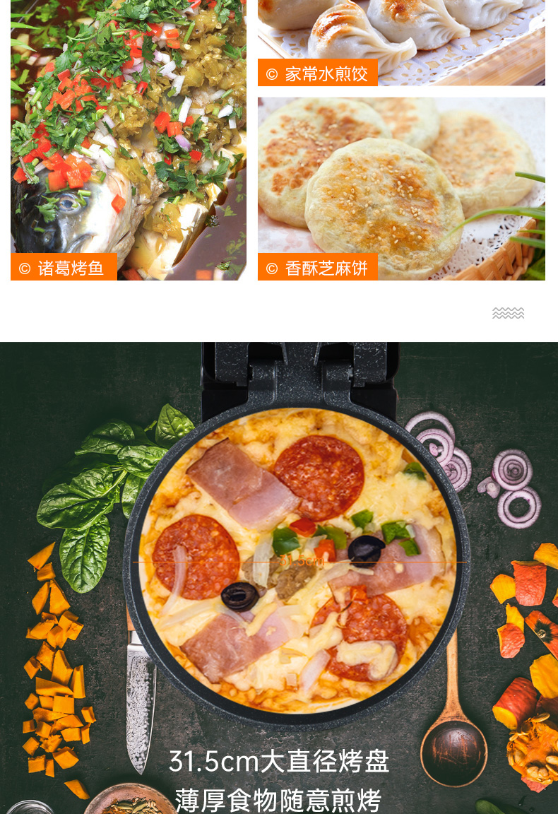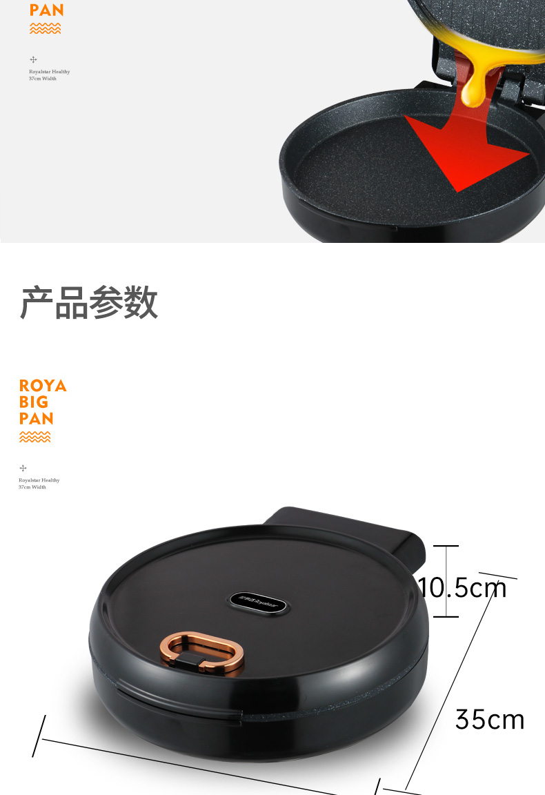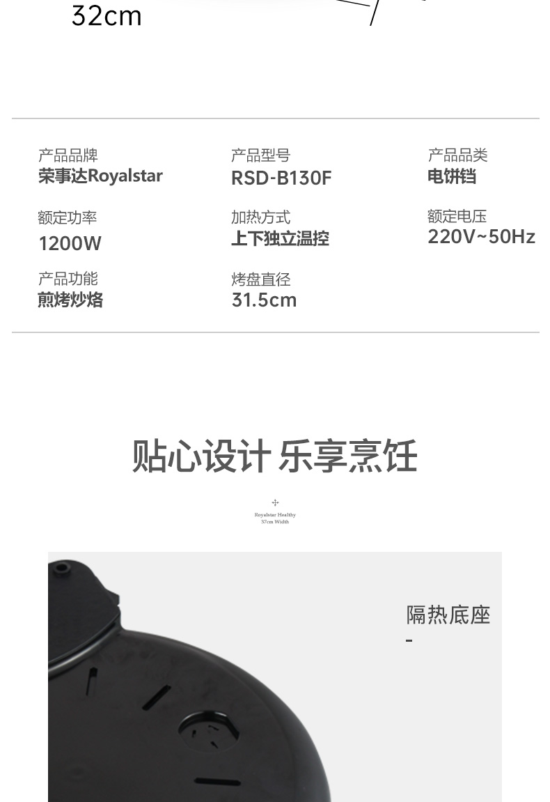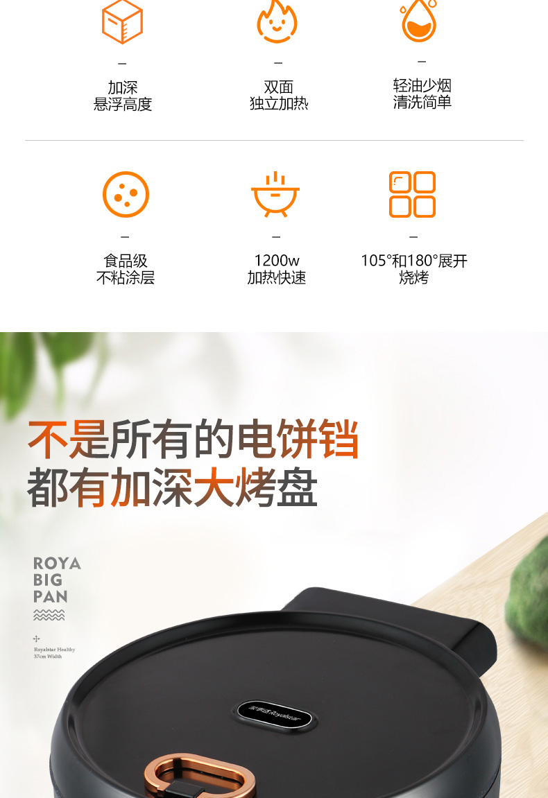 荣事达电饼铛胶木外壳耐高温双面独立控温180度自由开合