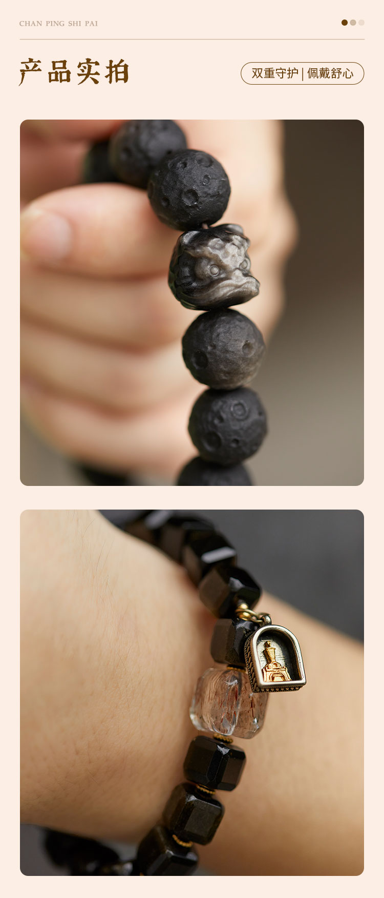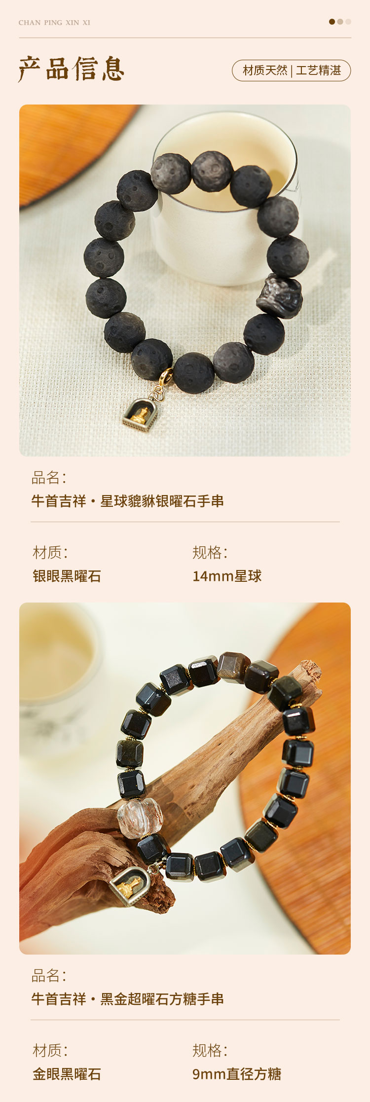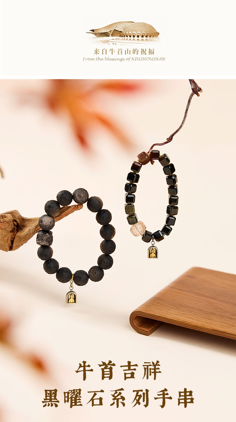 牛首山文创牛首吉祥·黑曜石系列手串男女单圈国风手饰南京纪念品