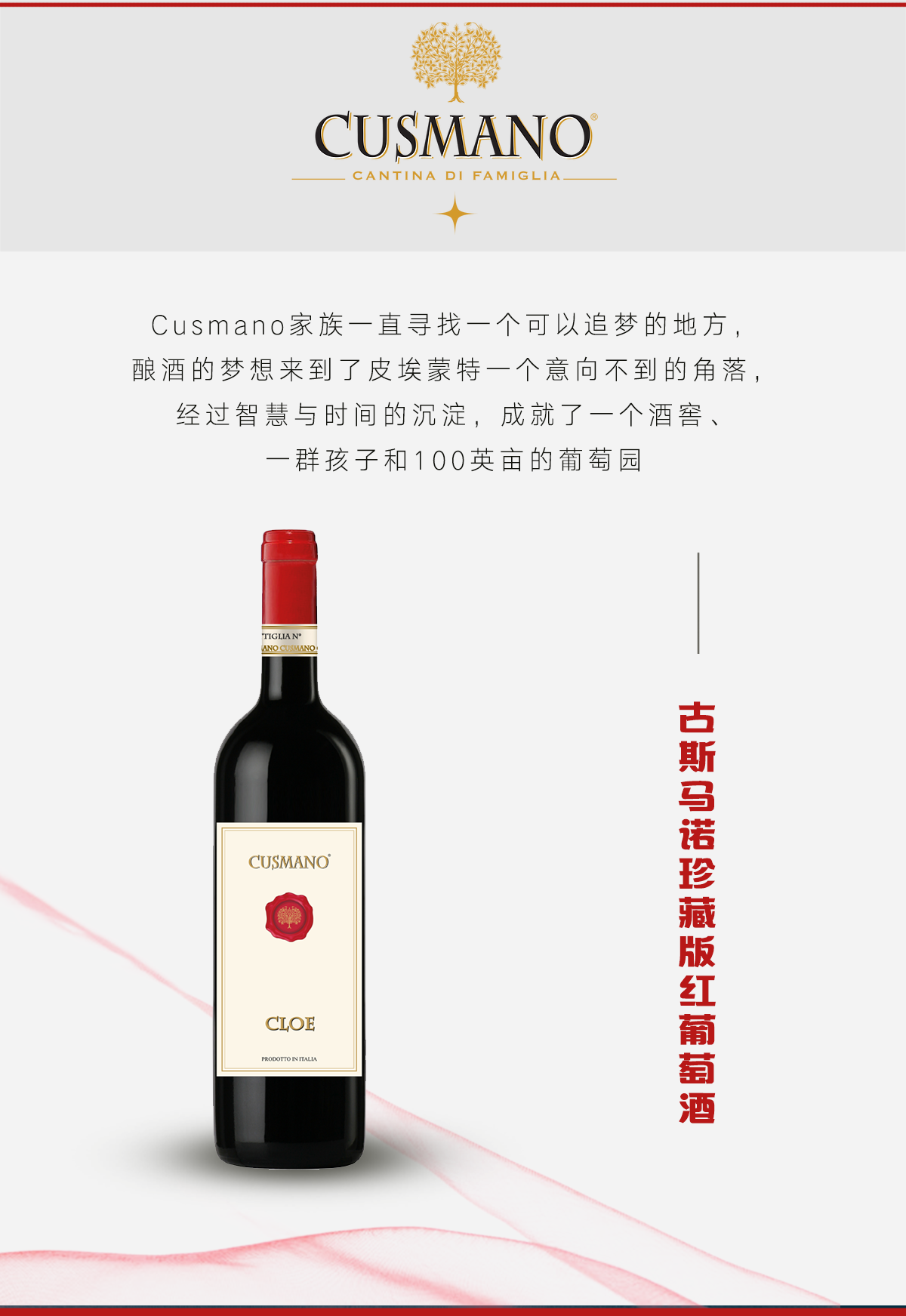 【优选餐酒】古斯马诺珍藏版红葡萄酒2016 意大利原装进口 750ml