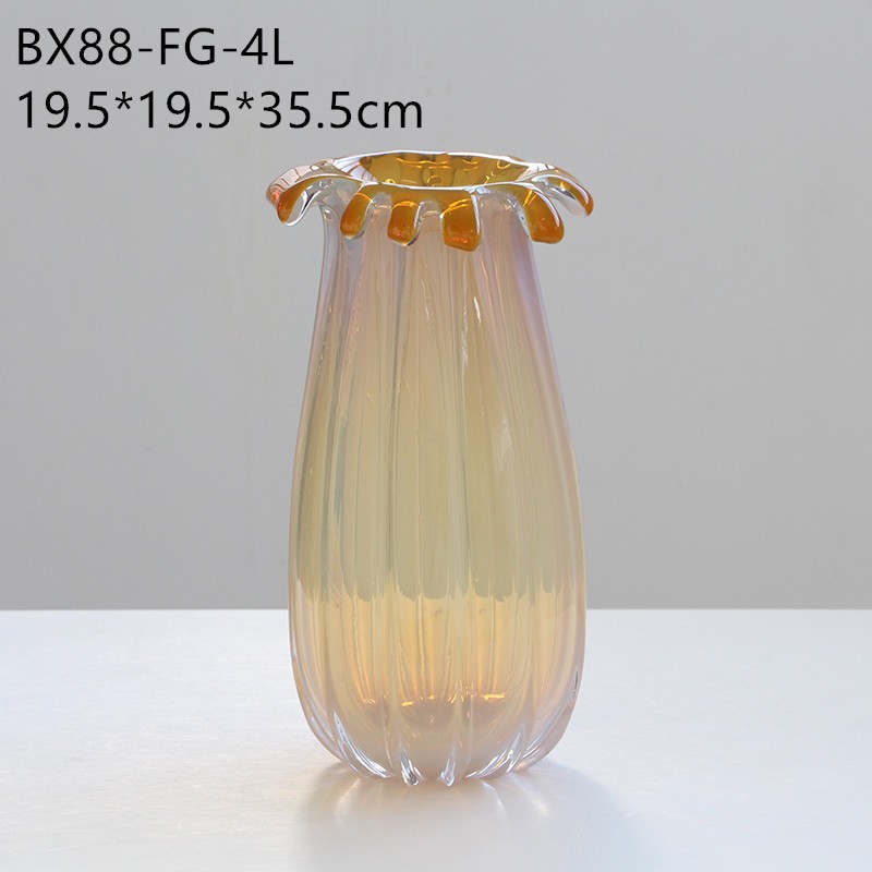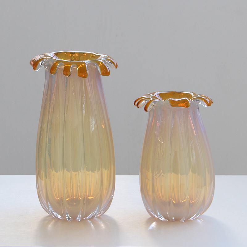 创意花朵造型厚重琉璃花瓶摆件客厅插花北欧波浪口样板间水养花器