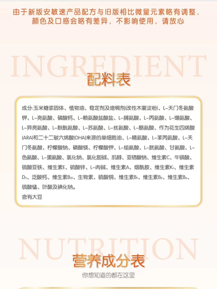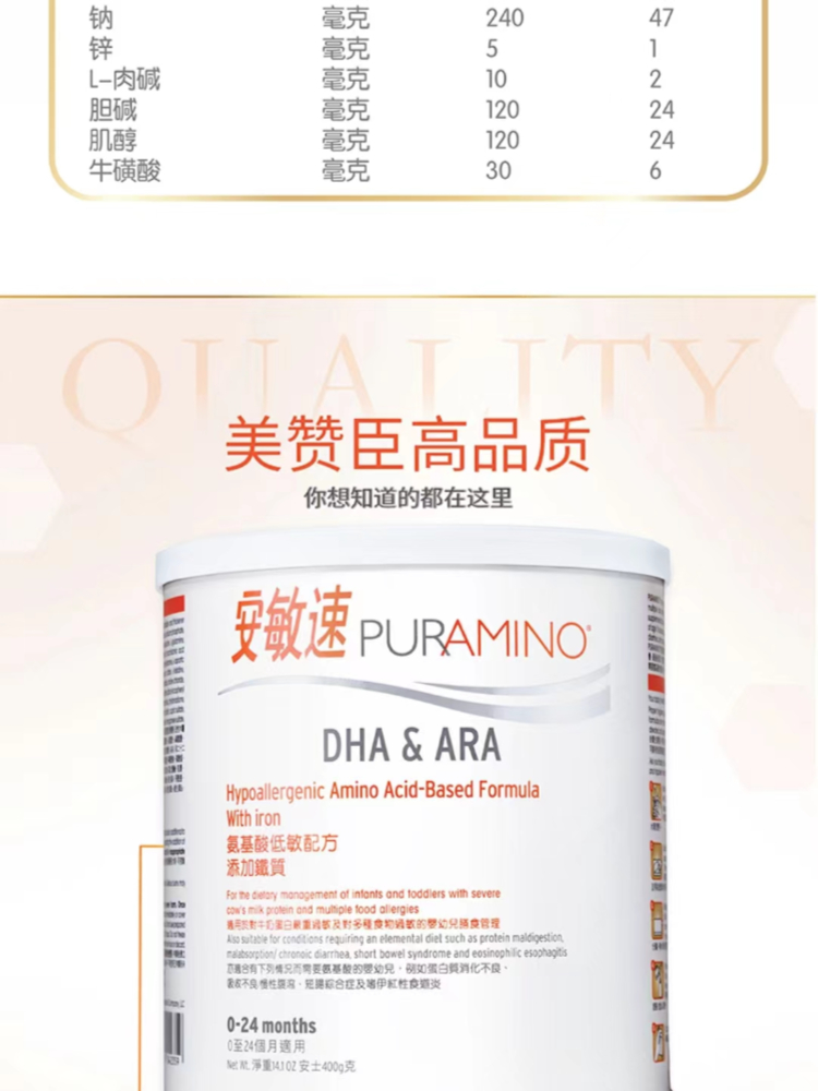 【咨询改价】港版美赞臣安敏速氨基酸配方奶粉1段400g