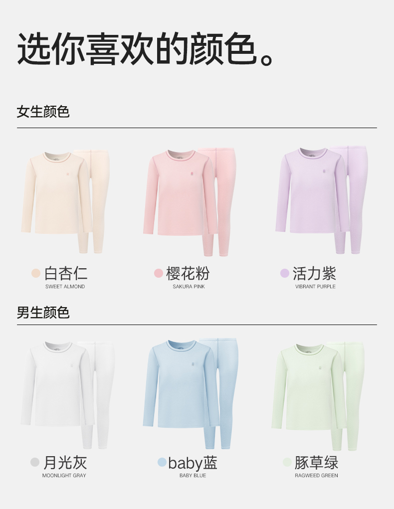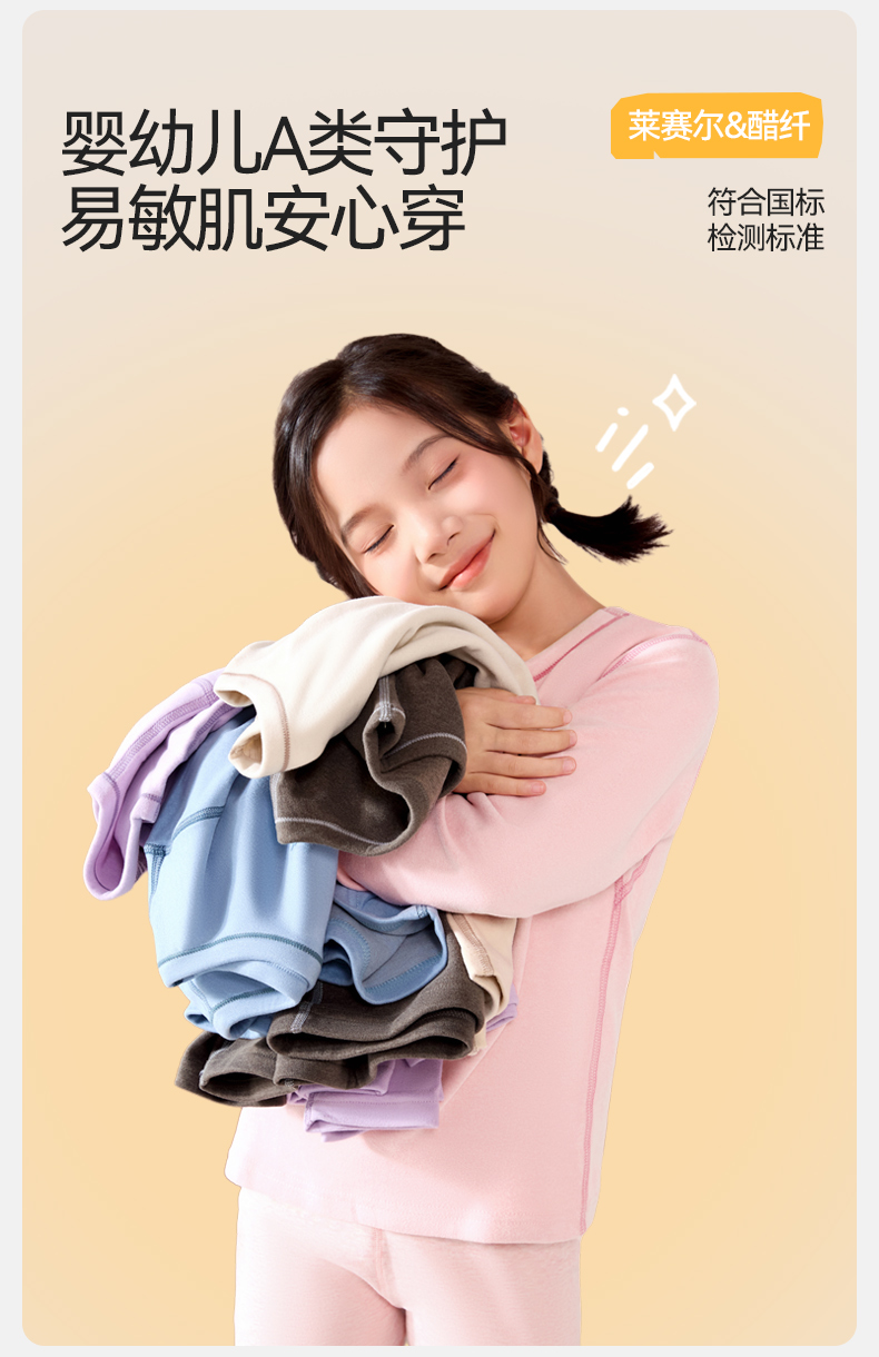 【商品名称】升级款!『暖八度』儿童醋酸羊绒抗菌保暖内衣套装