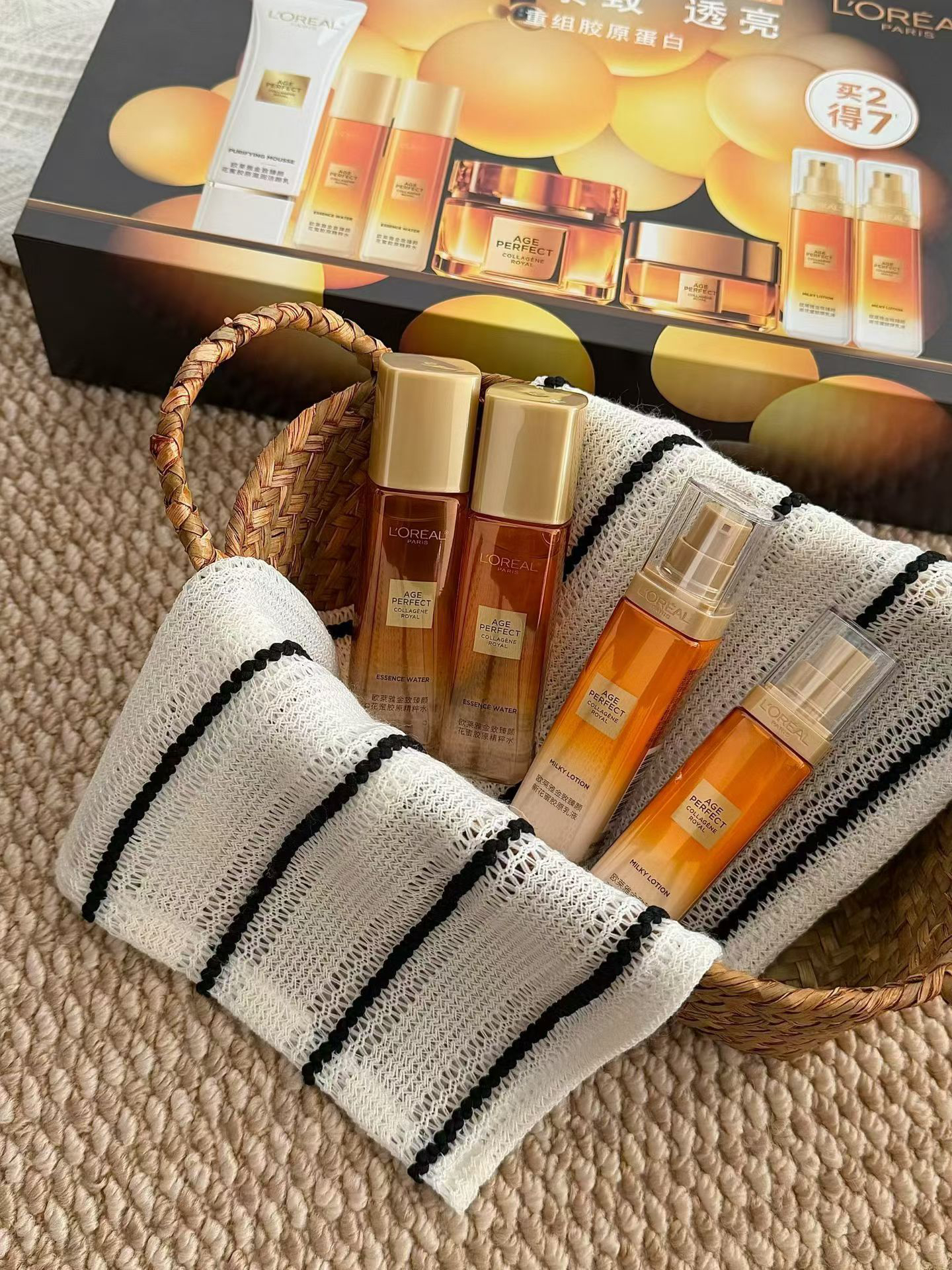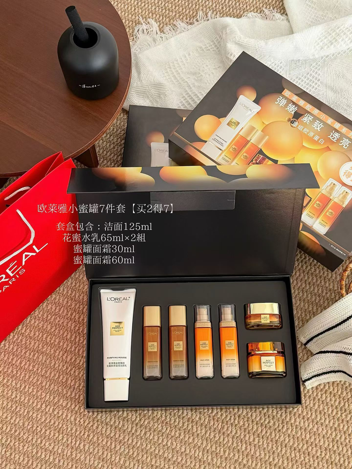欧莱雅花蜜小蜜罐七件套·欧莱雅花蜜水乳 补水补油补胶原一套全搞定