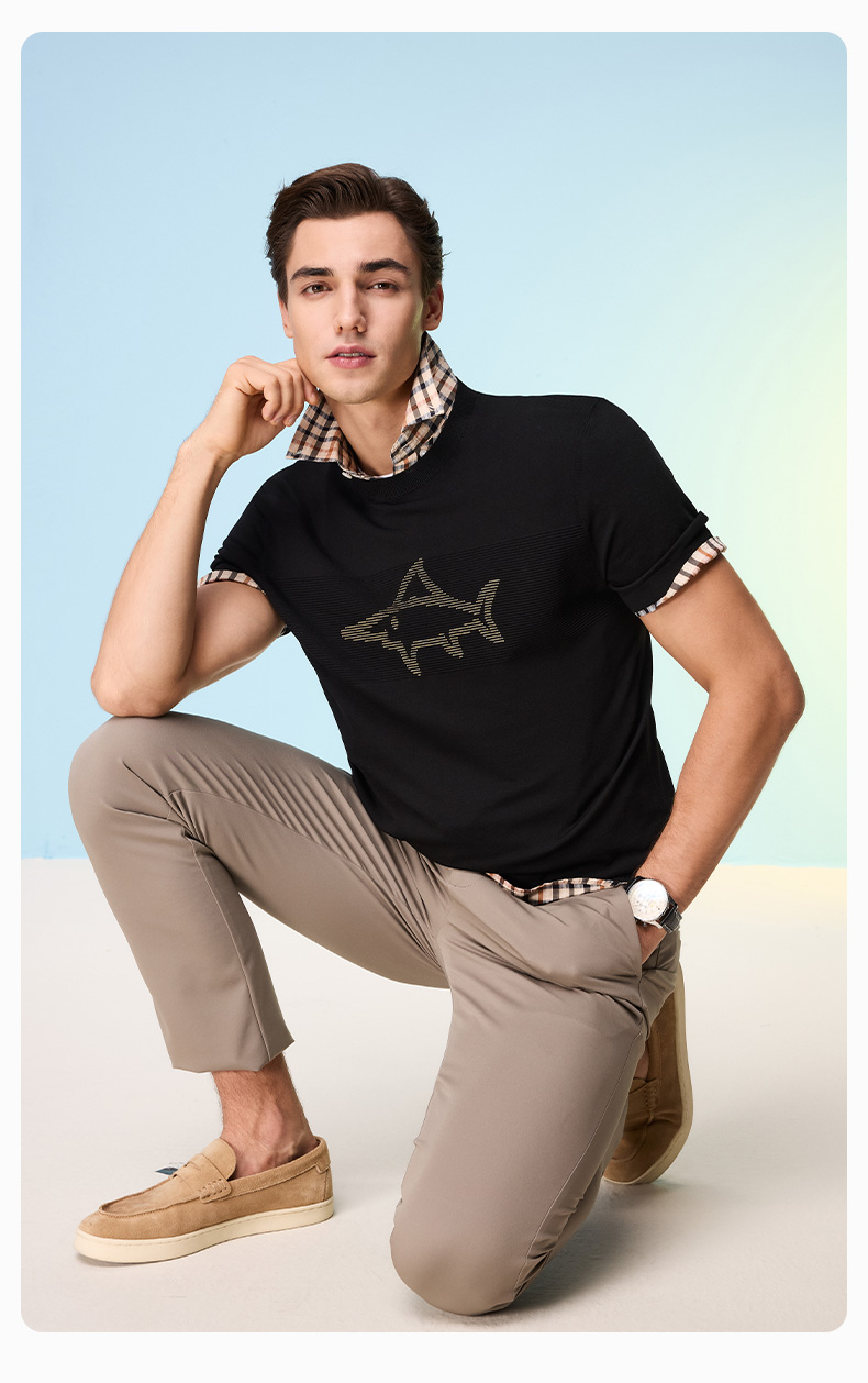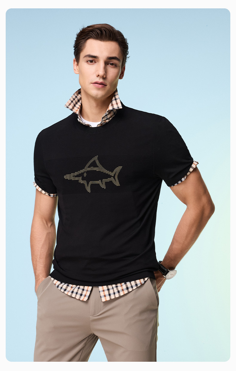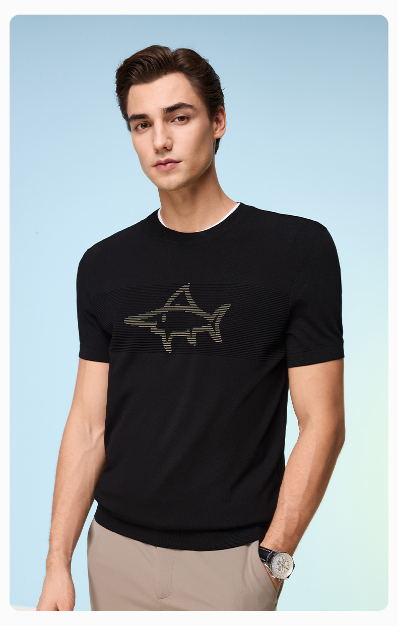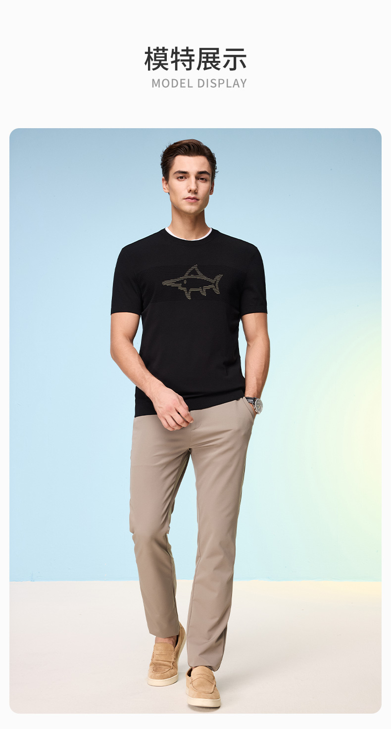 【抗起球】德鲨黑色短袖圆领T恤男2026夏新款舒适百搭上衣打底衫