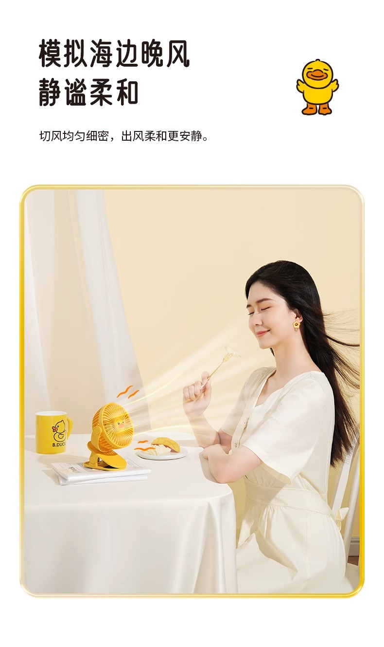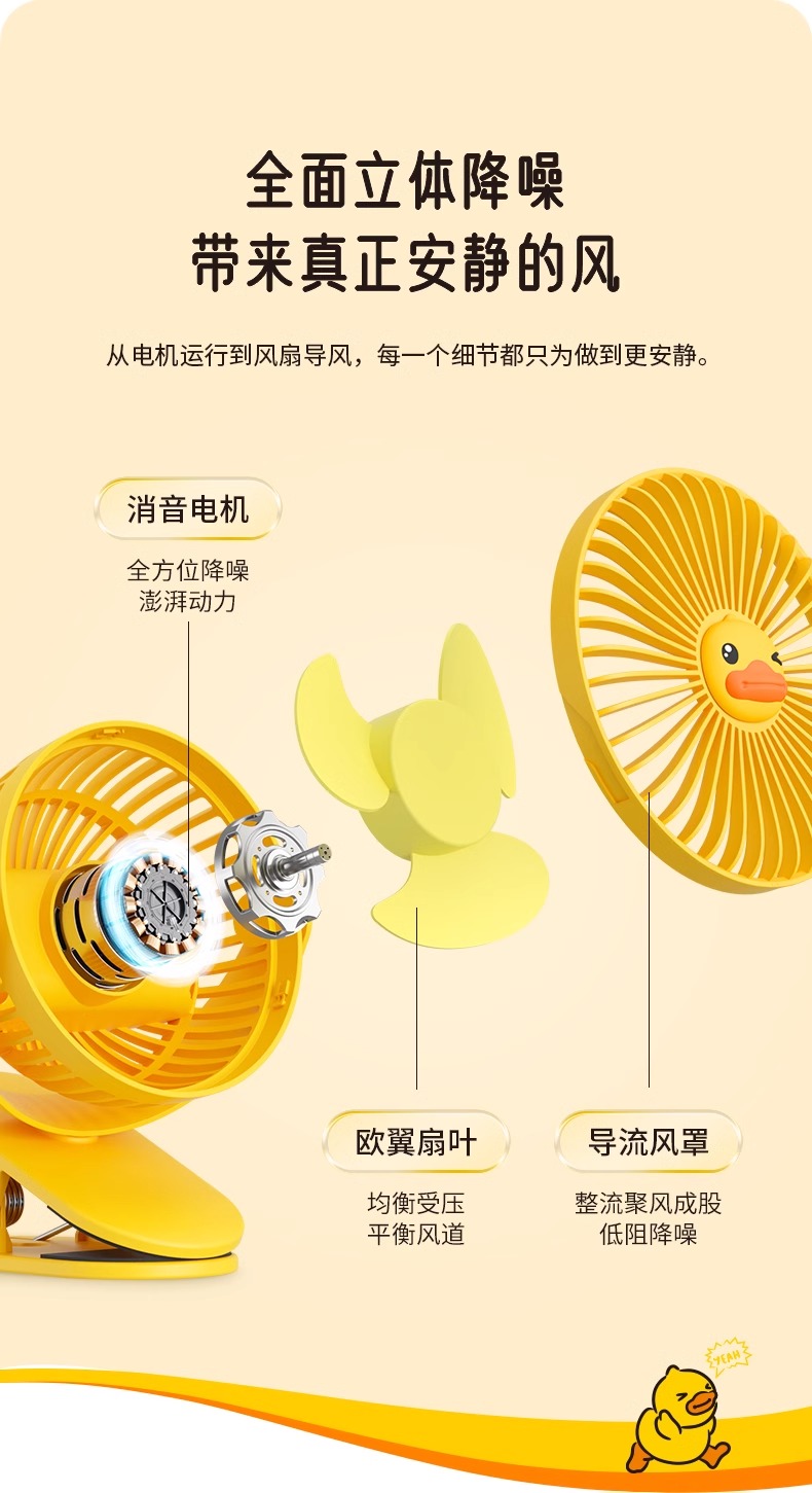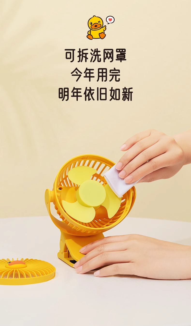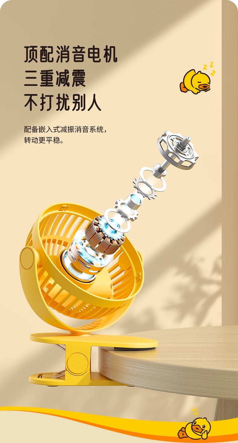 几素B.Duck小黄鸭联名USB小风扇充电款小型迷你宿舍夹式静音便携式学生床上铺夹子家用电风扇手持桌面办公室