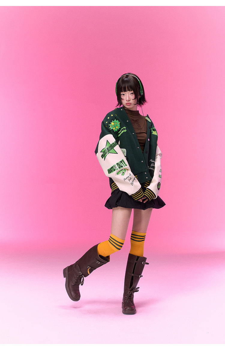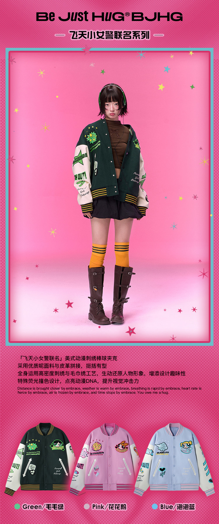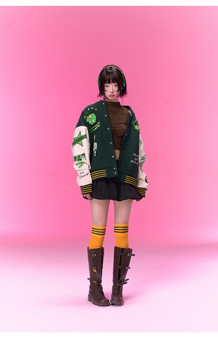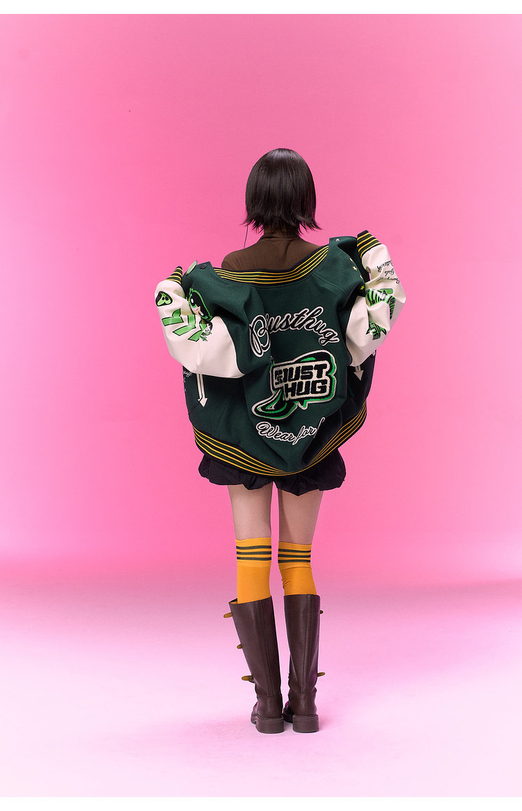 【飞天小女警联名】BJHG不计后果夹克外套女款春季美式刺绣棒球服