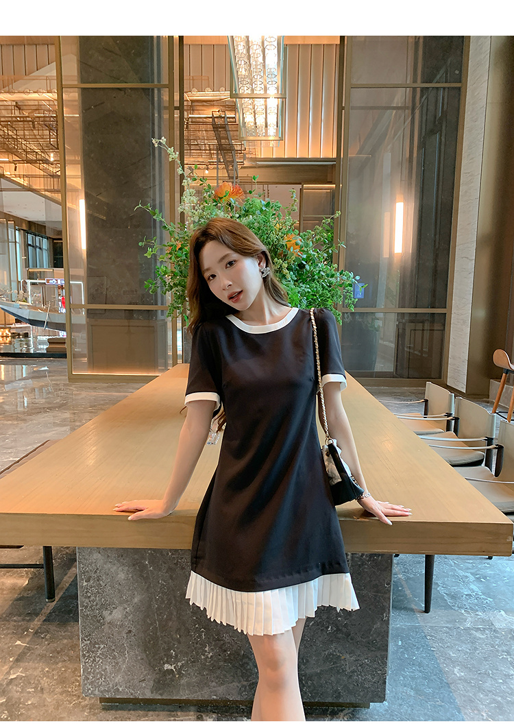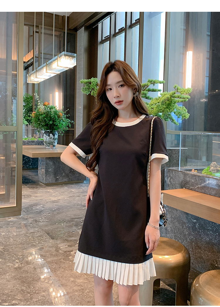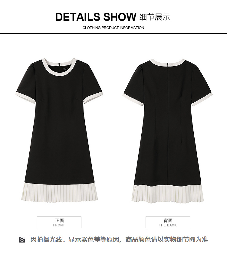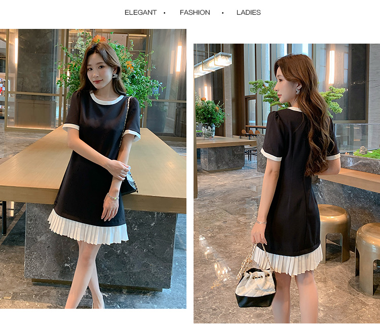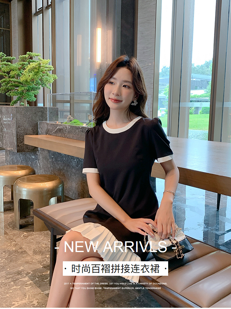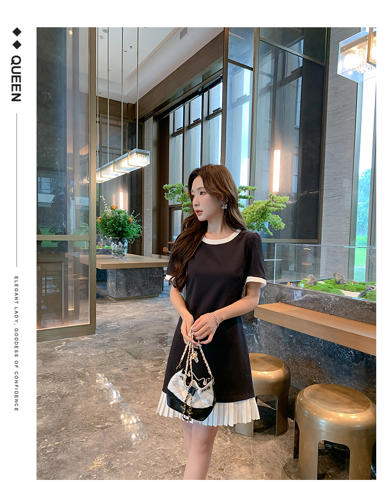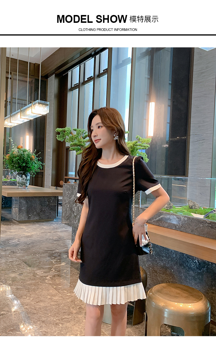 奢姿大码女装2025夏季减龄百褶拼接时尚连衣裙胖妹妹简约圆领裙子9952890472