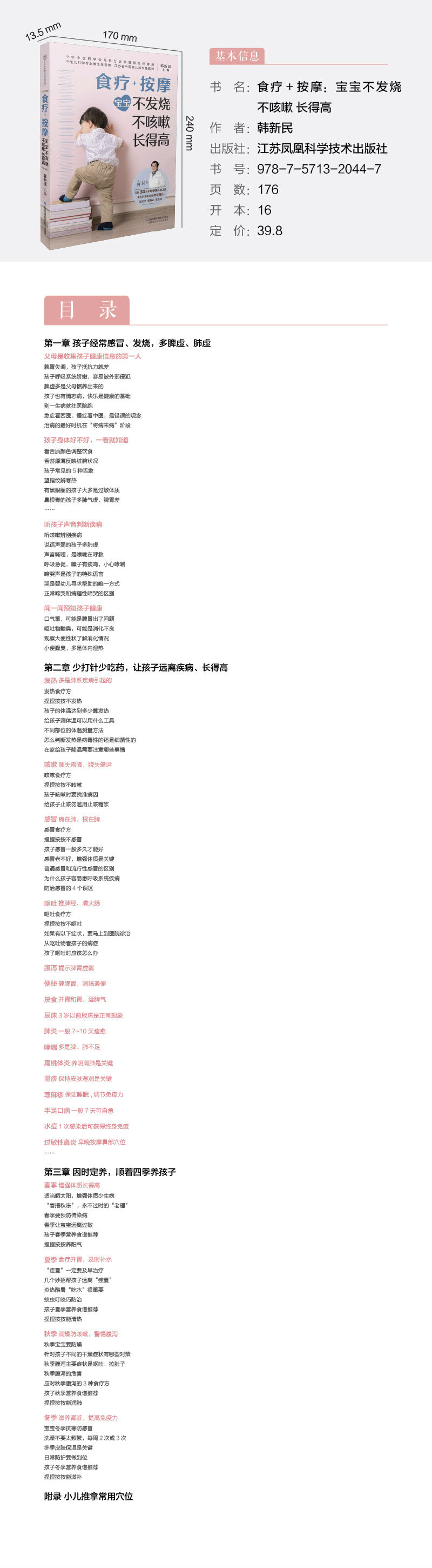 (仓发) 食疗+按摩(宝宝不发烧不咳嗽长得高)/江苏科学技术出版社/汉竹/9787571320447