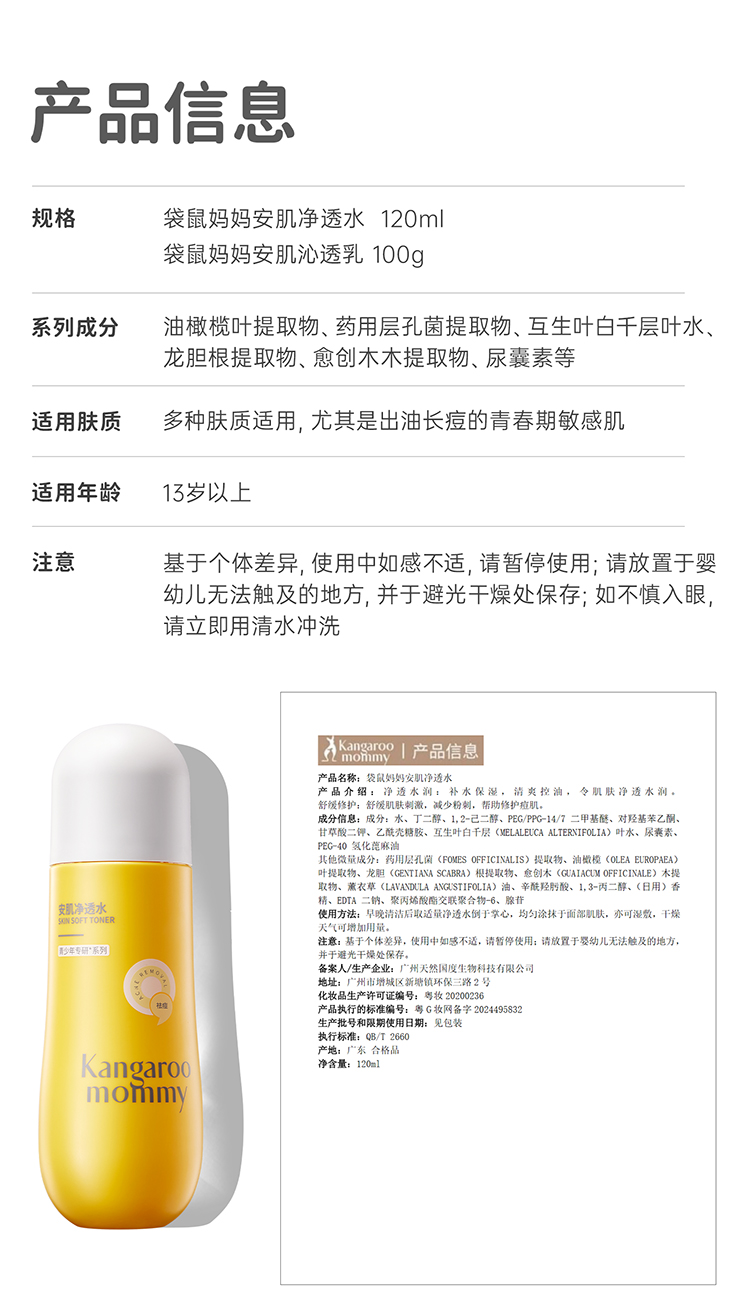 【青少年清透乳】无酸平衡水油防冒痘 袋鼠妈妈安肌清透乳120g