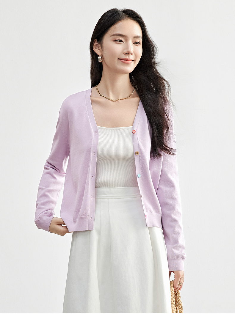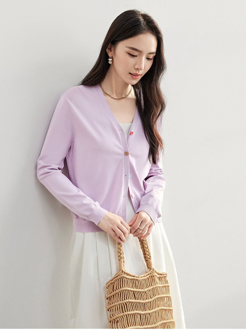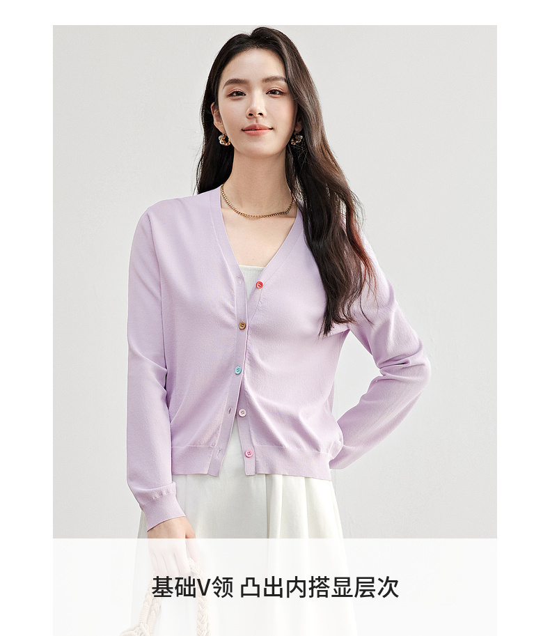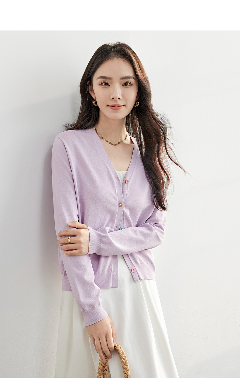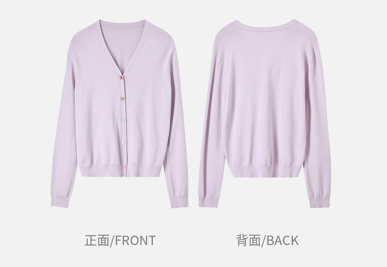 【内购】简约通勤减龄V领多巴胺糖果扣弹力双曲纱针织开衫-W51H58275
