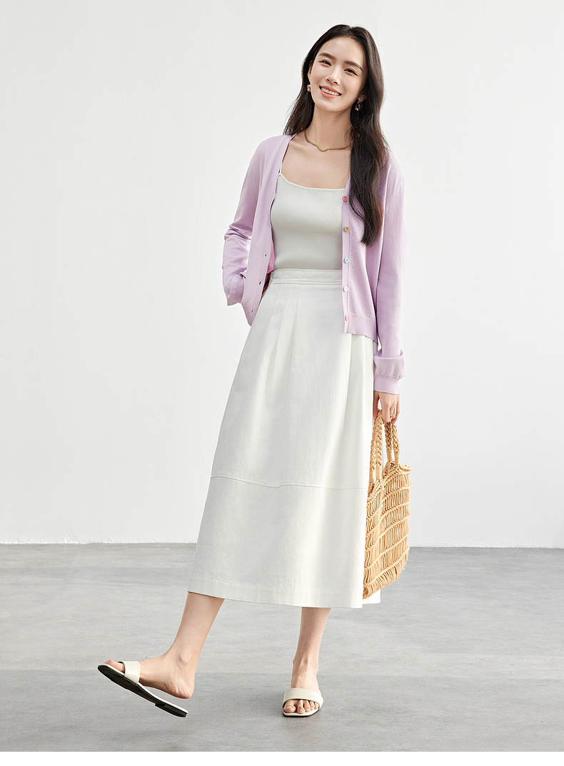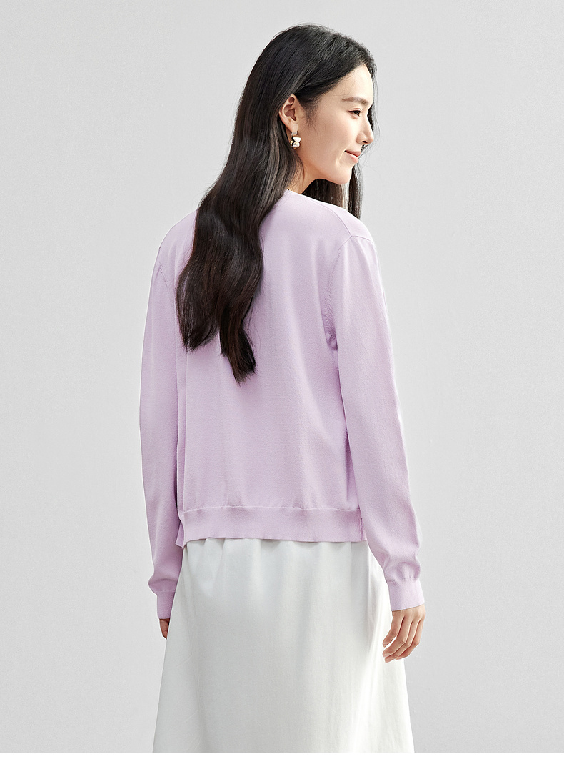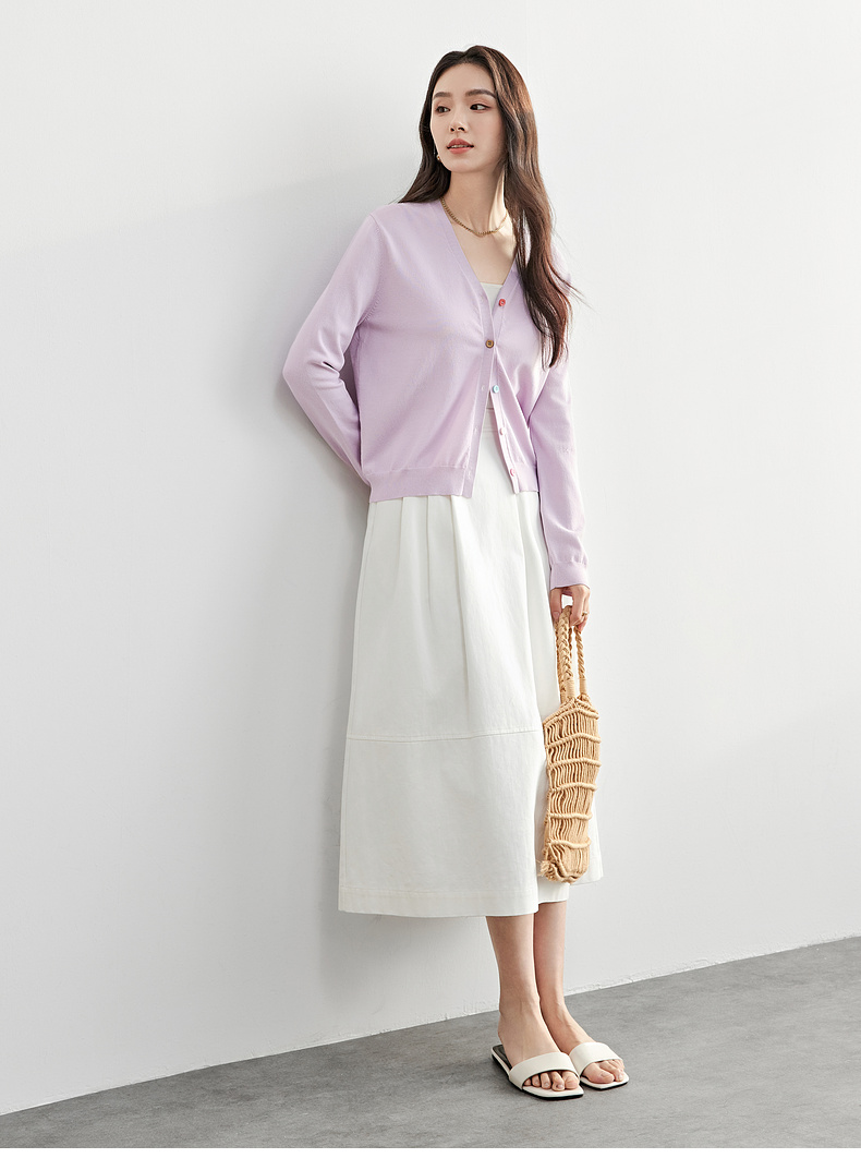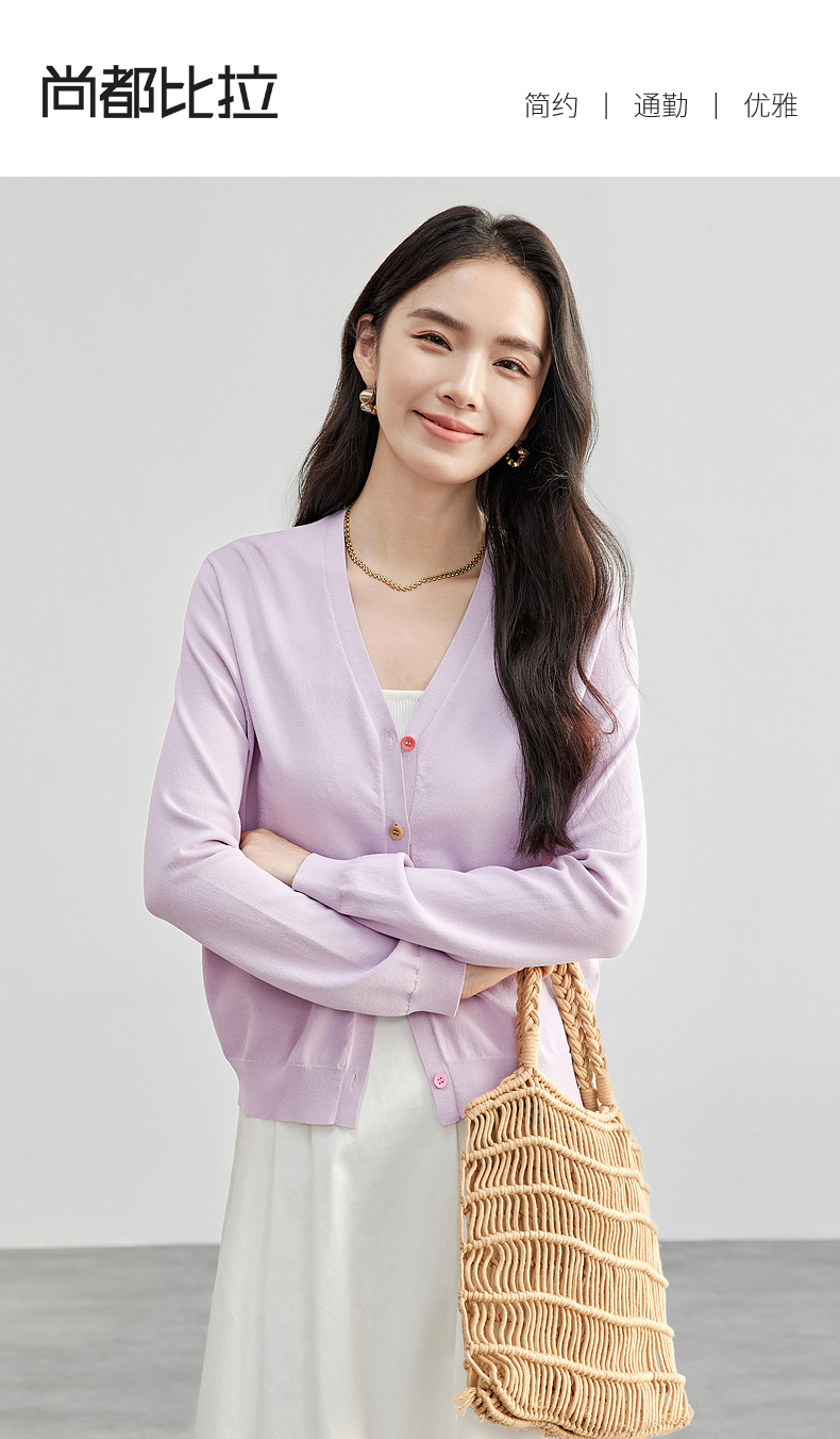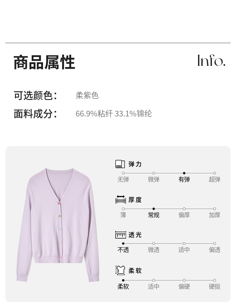 【内购】简约通勤减龄V领多巴胺糖果扣弹力双曲纱针织开衫-W51H58275