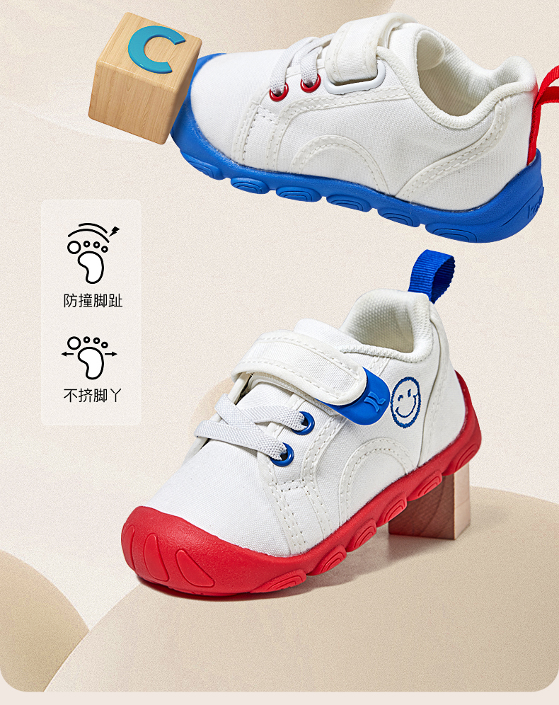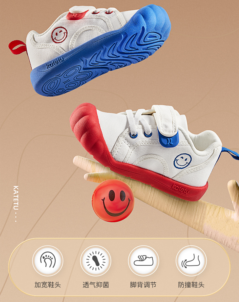 卡特兔儿童帆布鞋秋季幼儿园室内鞋男宝宝女童学步小白鞋