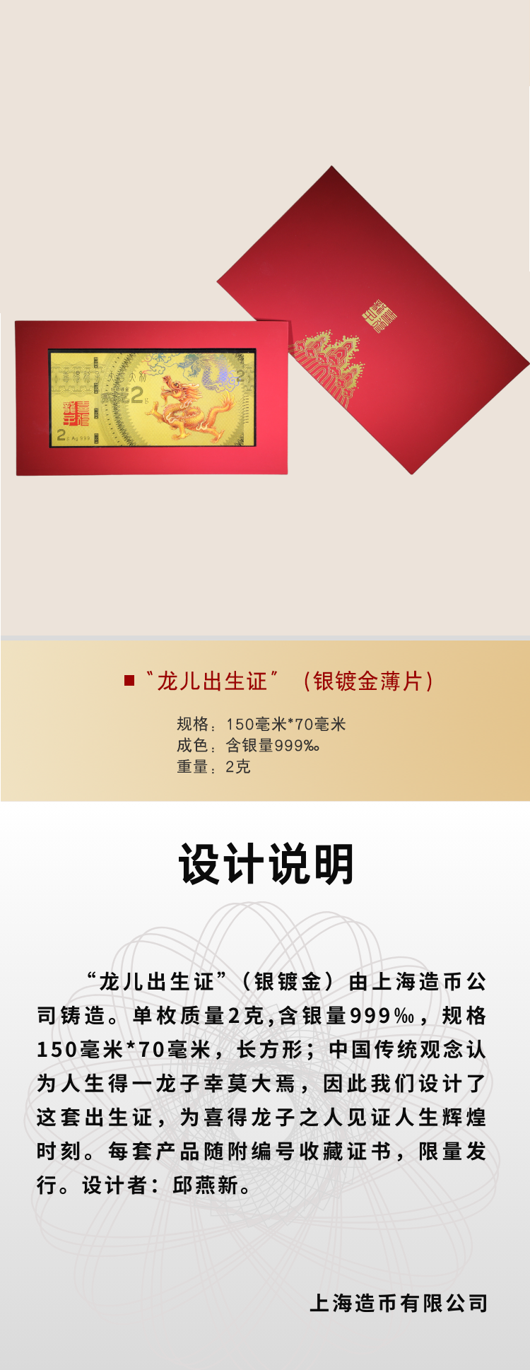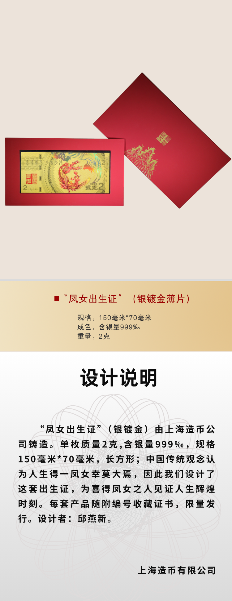 龙儿凤女出生证银镀金薄片