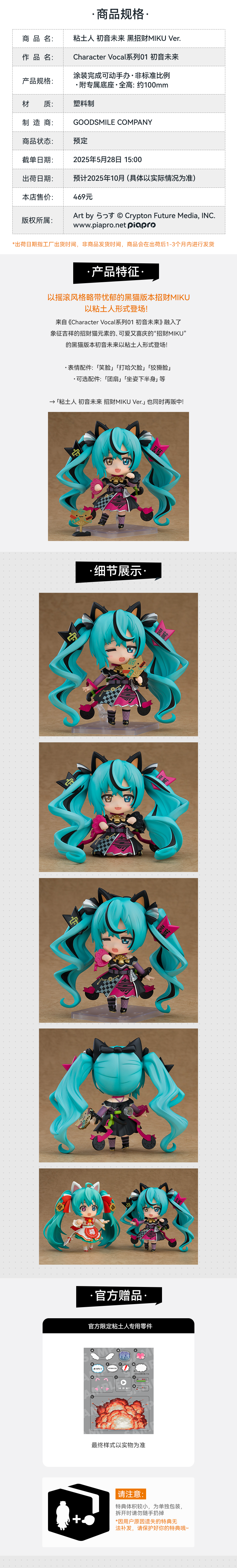 【GSC补款】粘土人 初音未来 黑招财MIKU Ver.