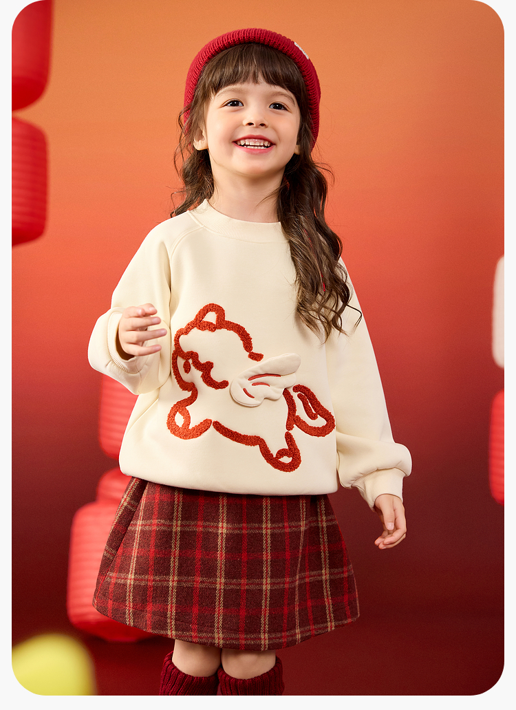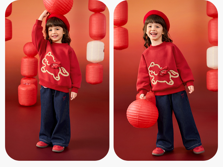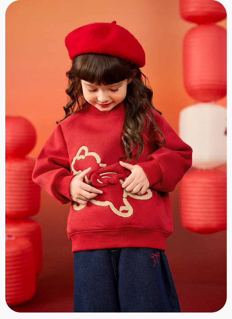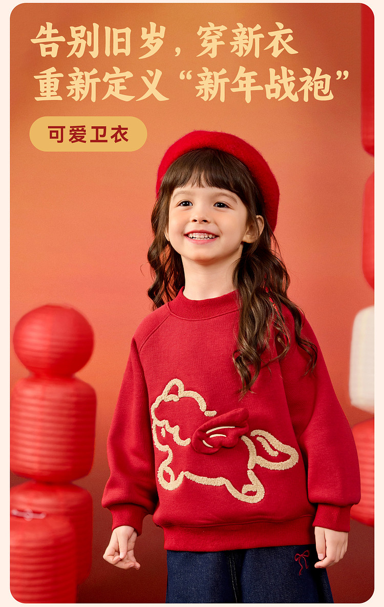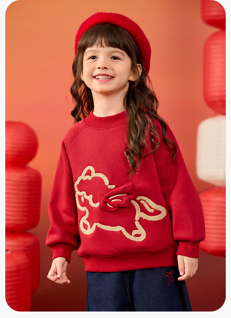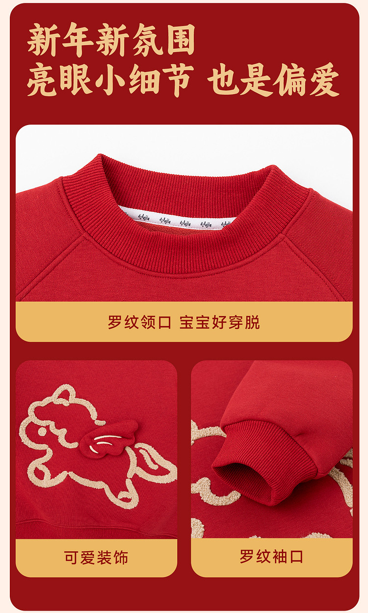 嘟嘟家女童拜年服卫衣宝宝加绒上衣冬季喜庆年装童装
