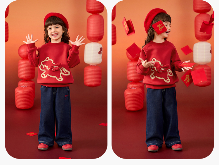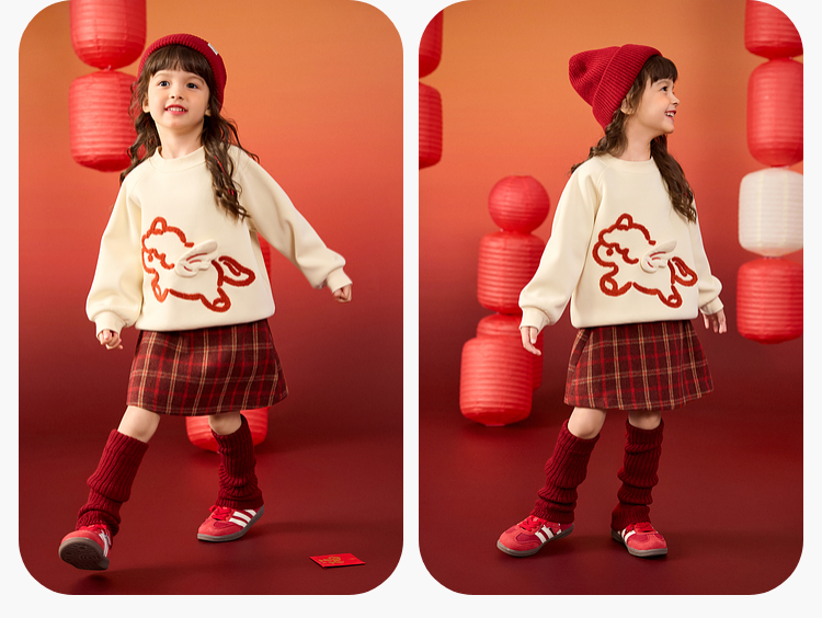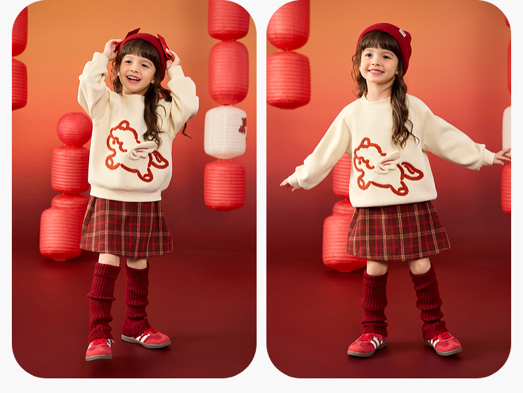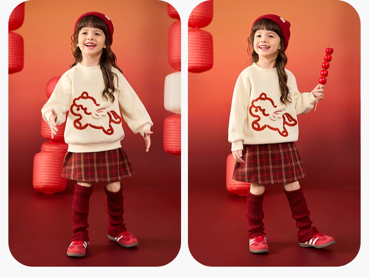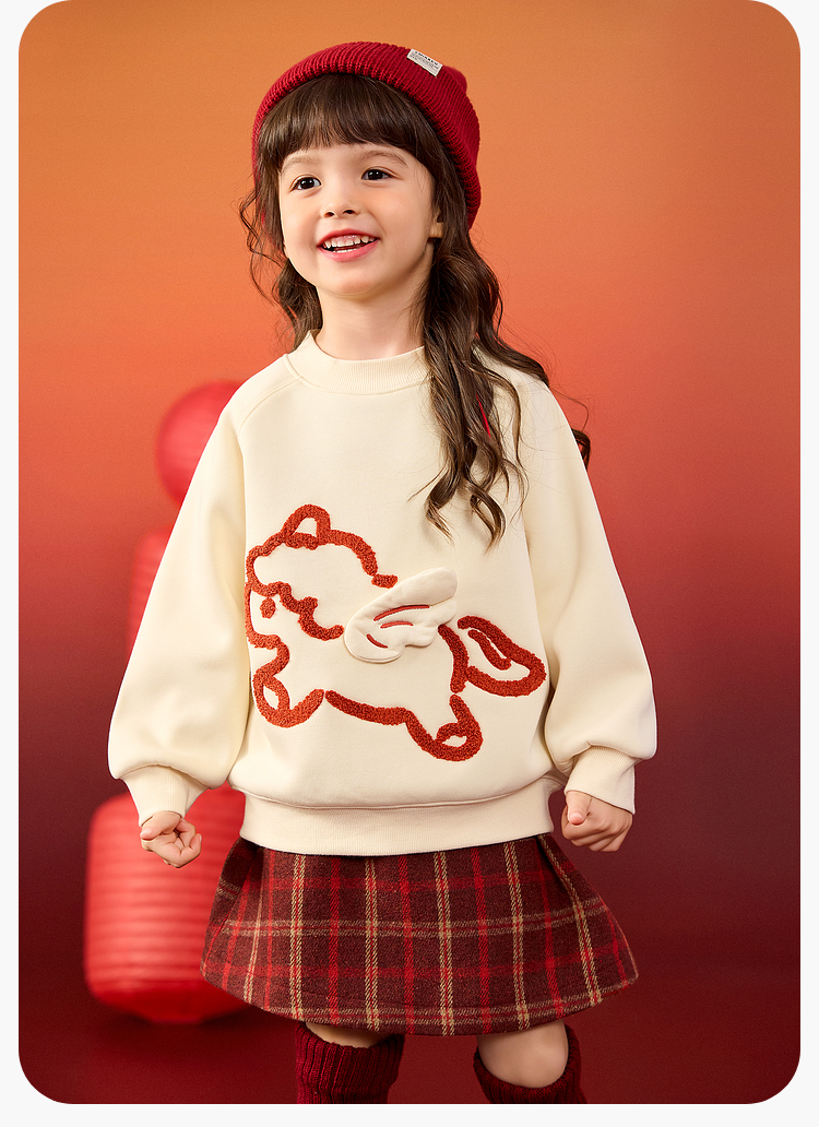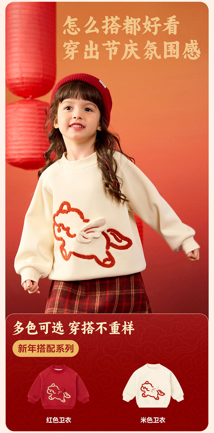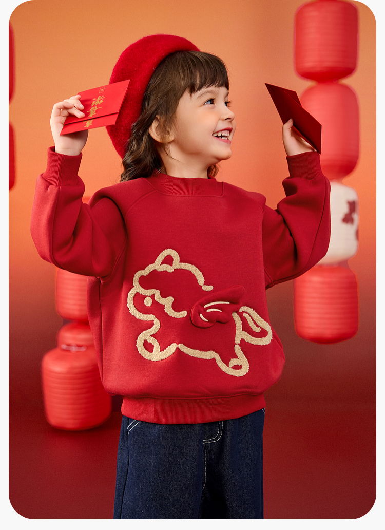 嘟嘟家女童拜年服卫衣宝宝加绒上衣冬季喜庆年装童装
