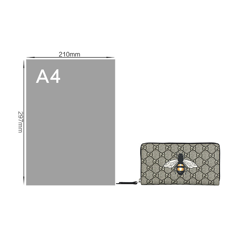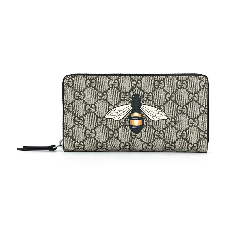 【国内现货】GUCCI/古驰女士蜜蜂印花人造帆布/配皮长款钱包钱夹451273K5V1N