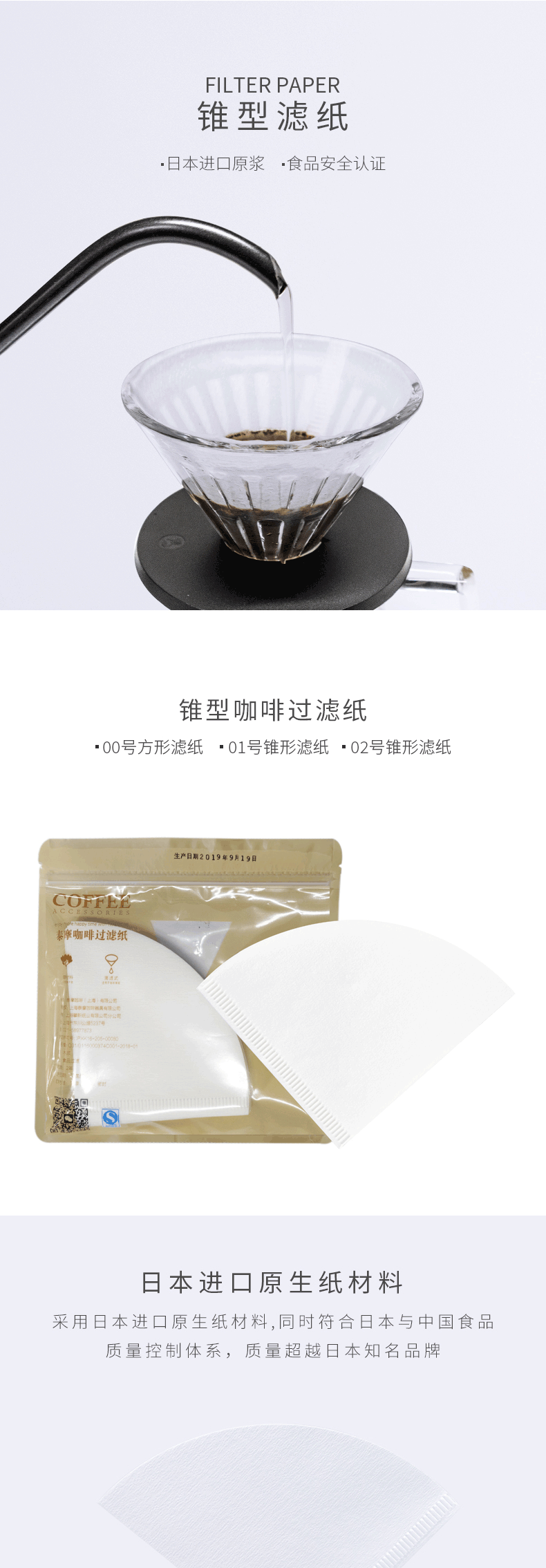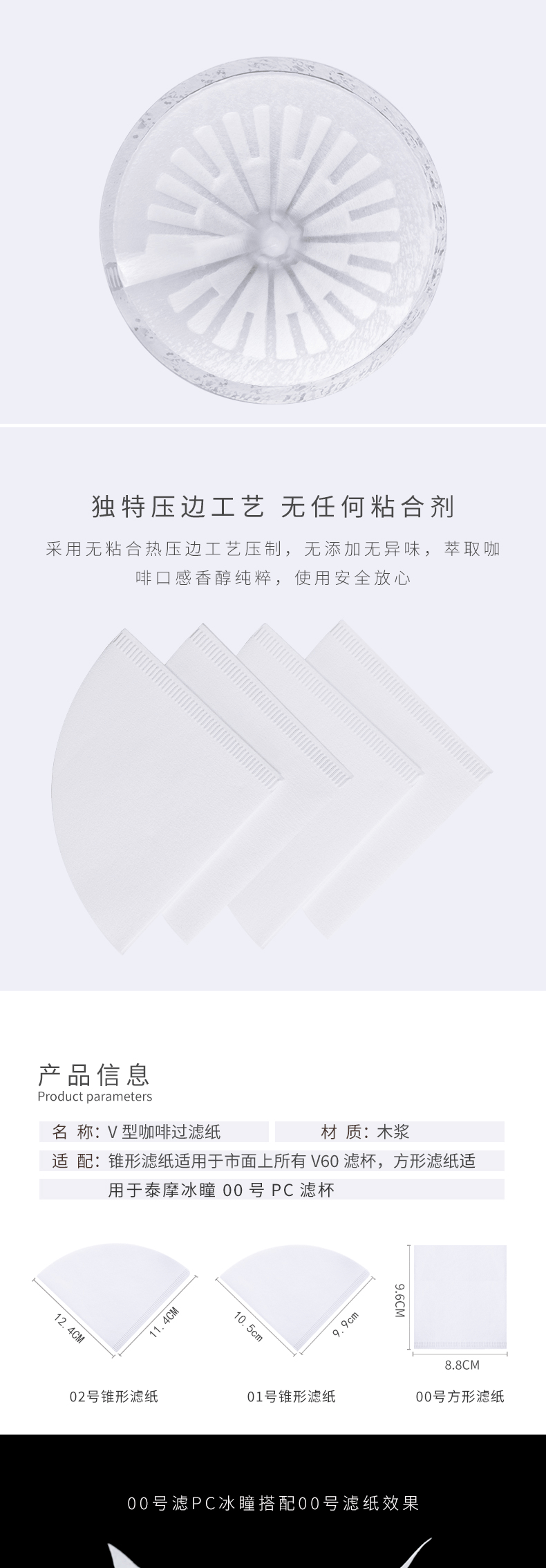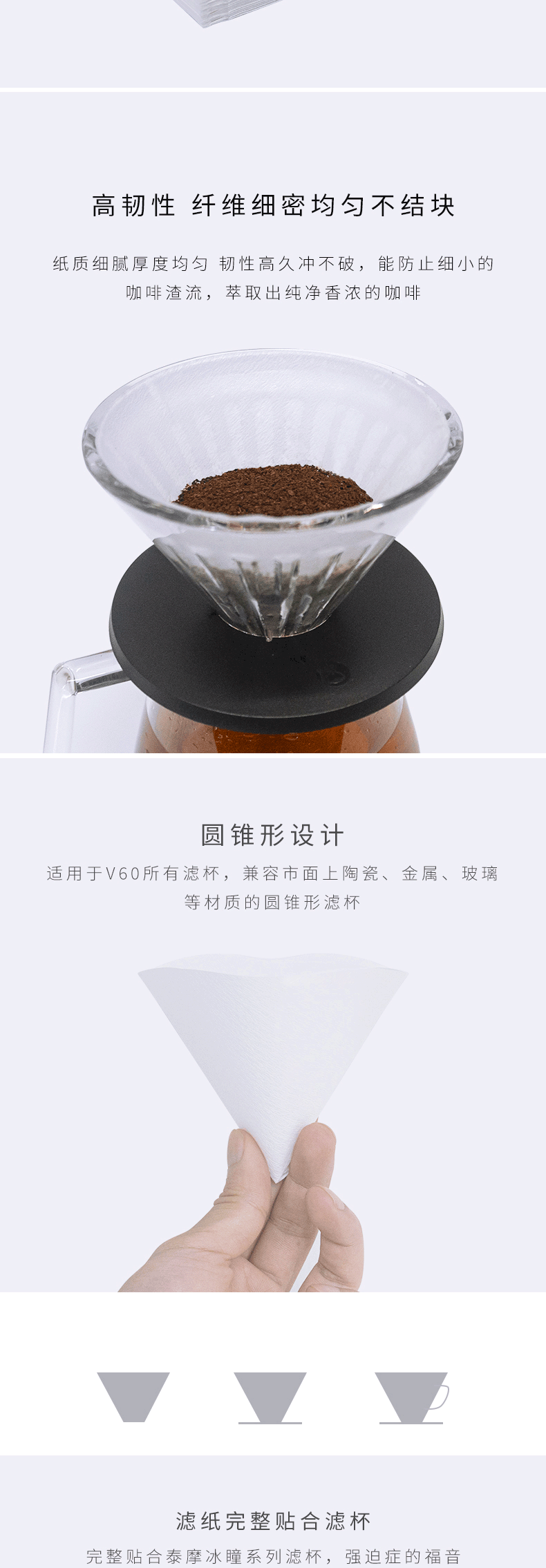 泰摩 锥形咖啡过滤纸 50张 V型 V-02