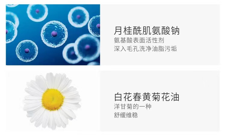 【作 用】 氨基酸温和无刺激配方,温和清除皮肤表污垢及化妆品残留物,让后续护肤品更易渗透水分和养分,让肌肤净透细腻。