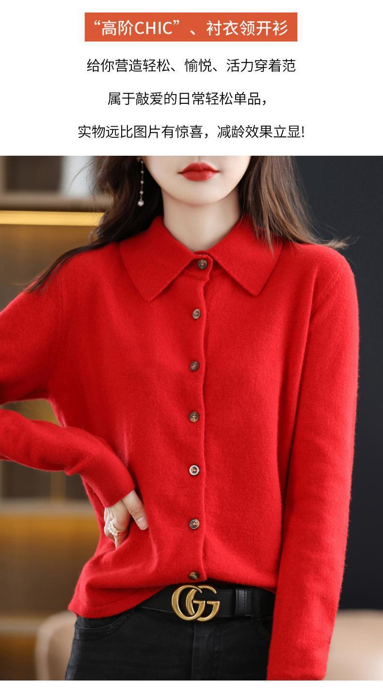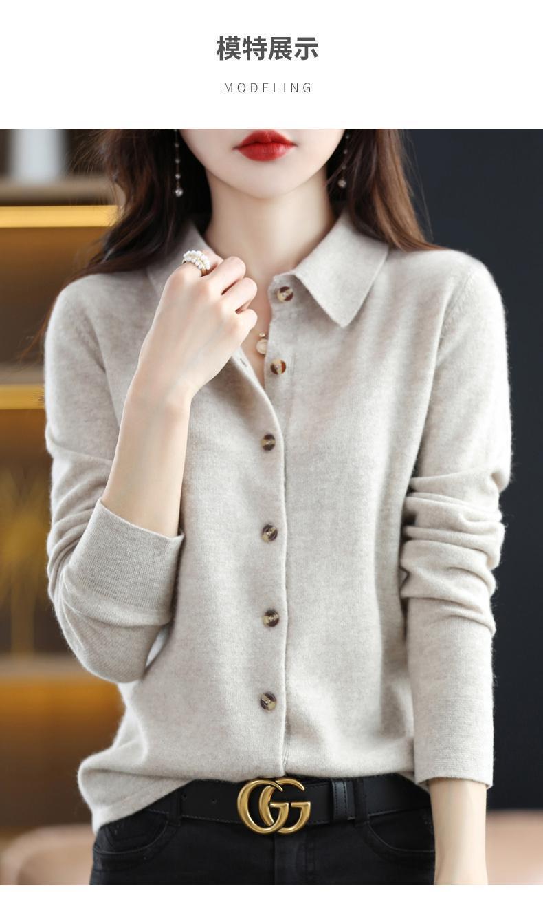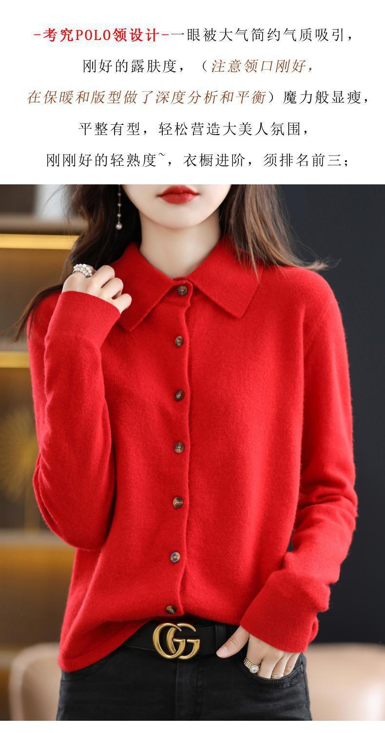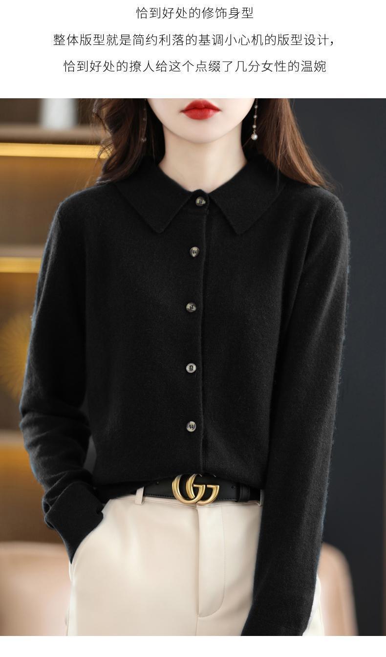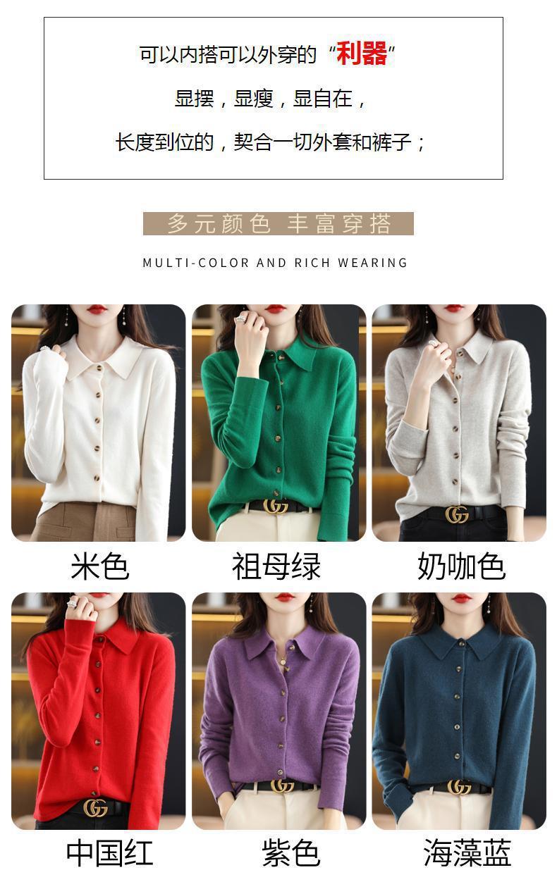 POLO领针织衬衫外搭宽松开衫气质翻领外套ZY-DMR430