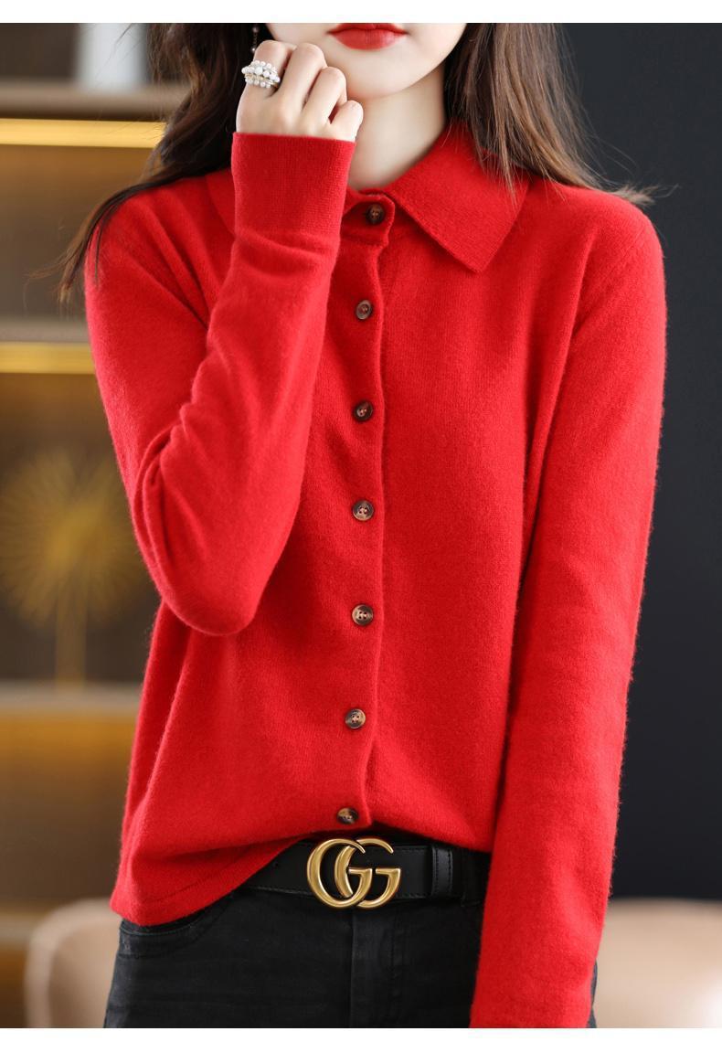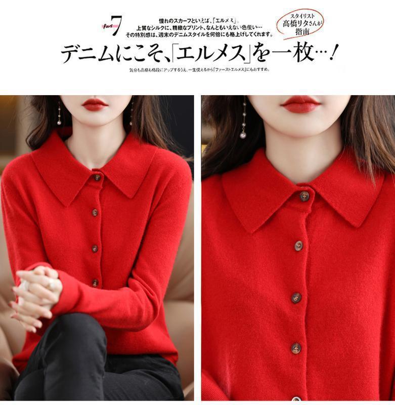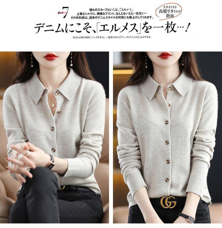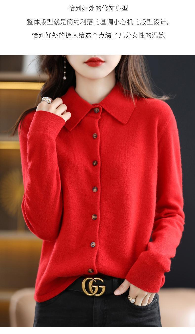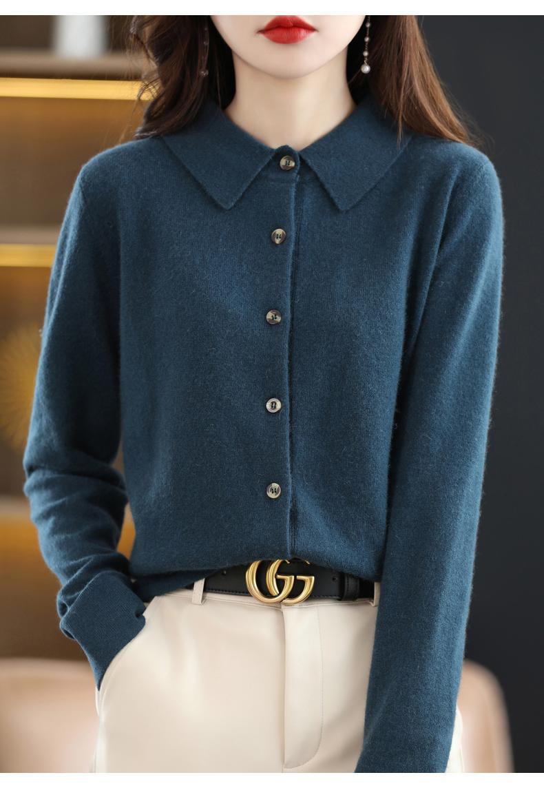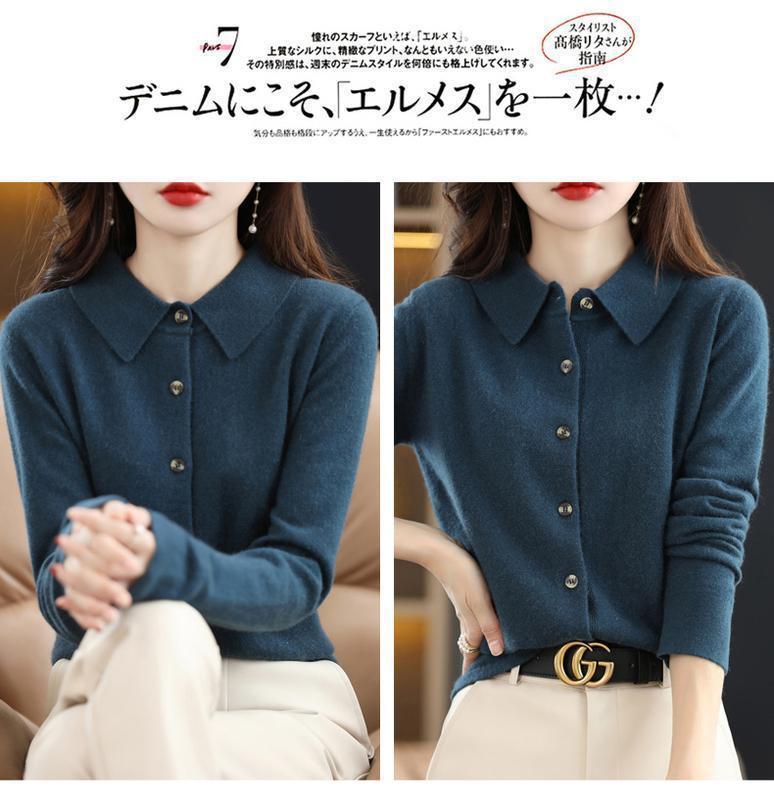 POLO领针织衬衫外搭宽松开衫气质翻领外套ZY-DMR430