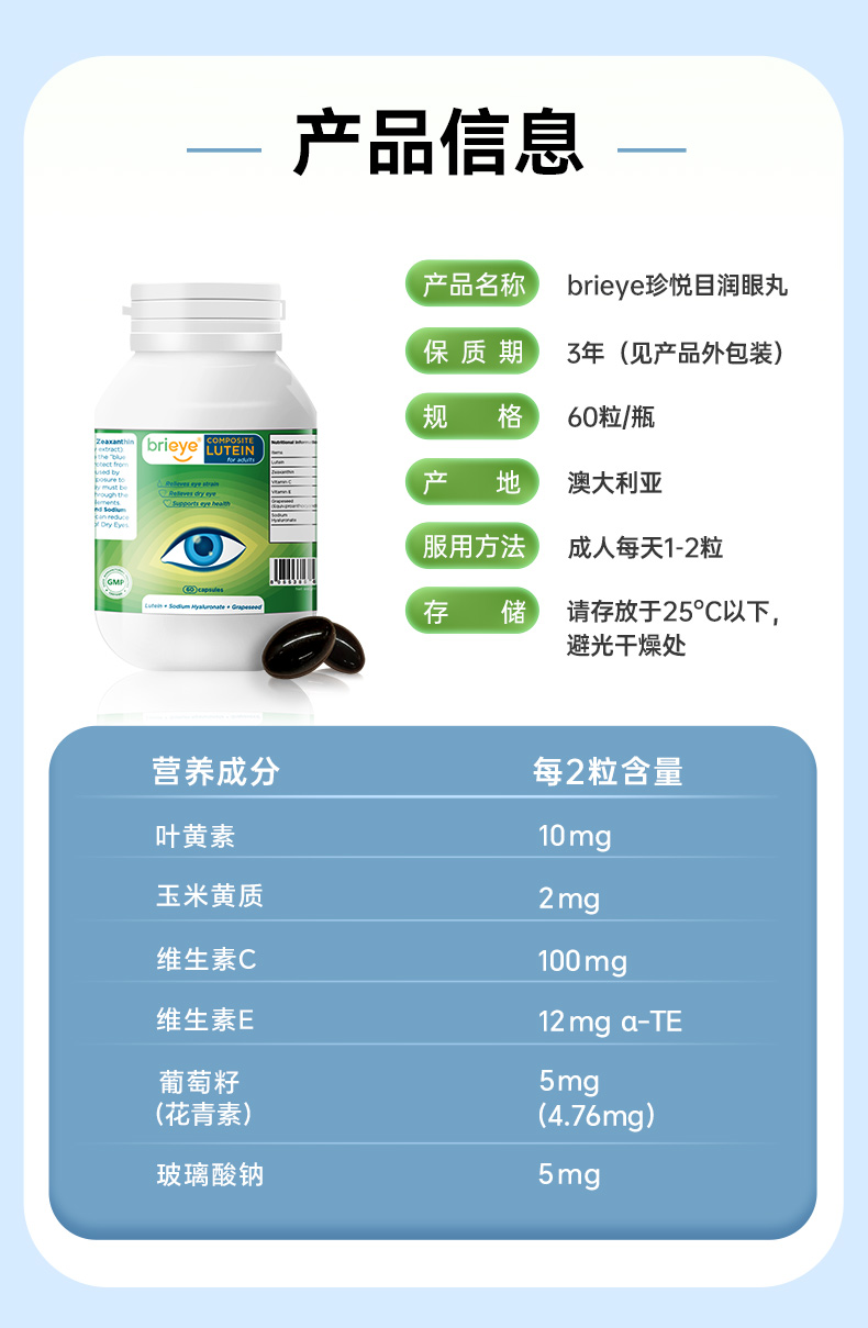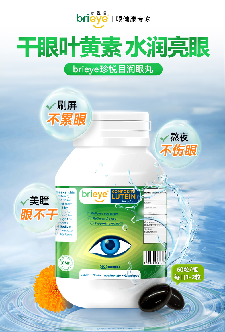 【邱震海专属】brieye珍悦目 干眼叶黄素胶囊 水润亮眼护眼部成人 60粒/瓶(有效期至2026-11-01,介意慎拍)