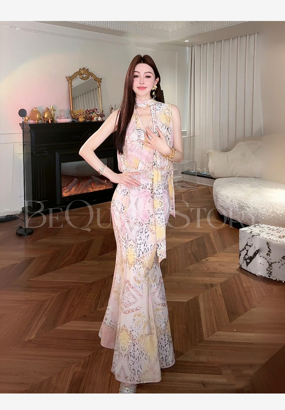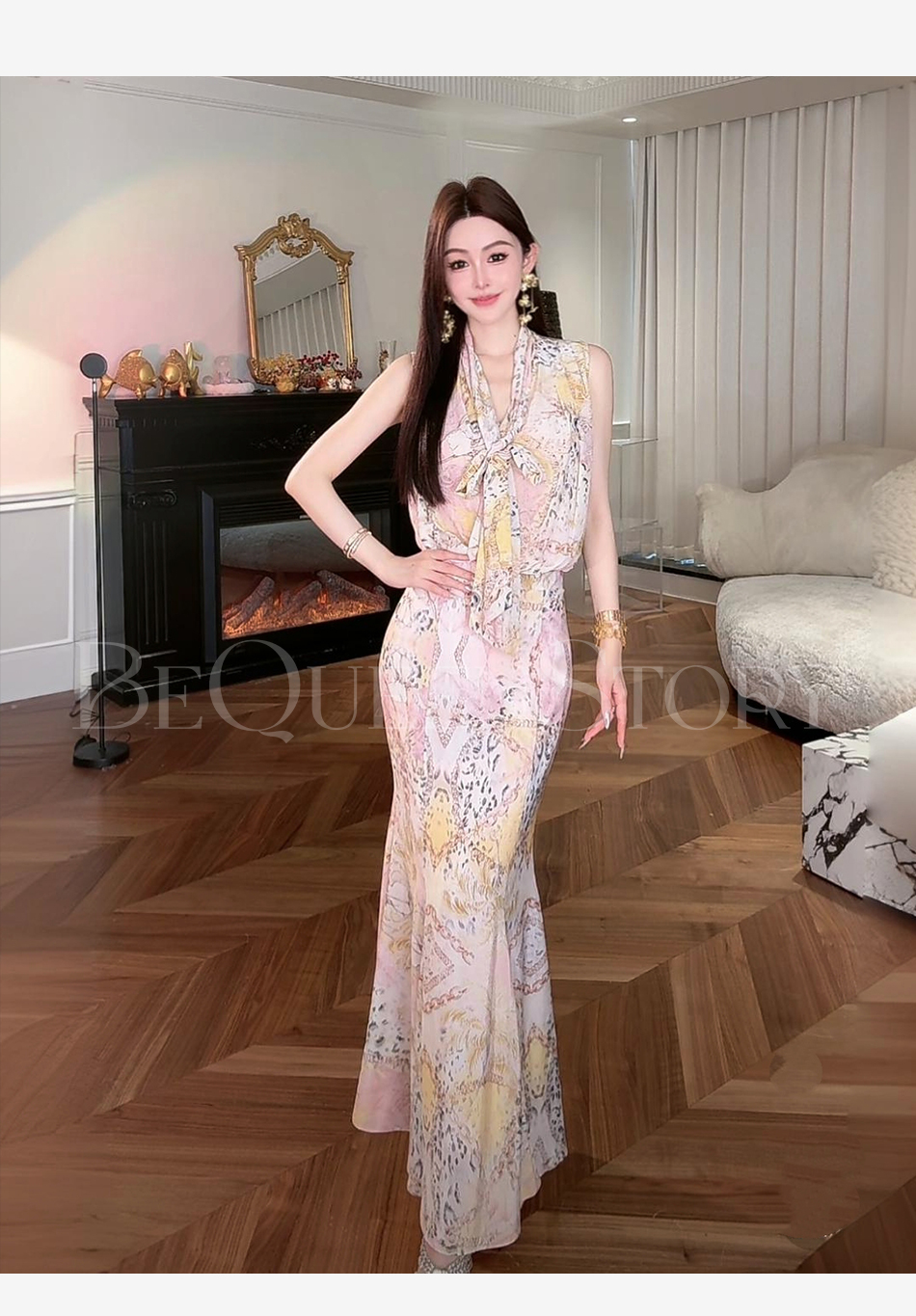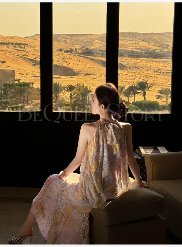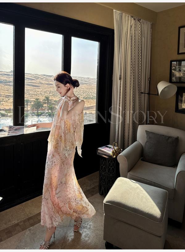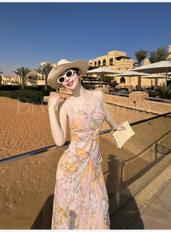 余潇潇【鎏金粉豹】2025春装新款欧若风印花桑蚕丝吊带连衣裙&套装